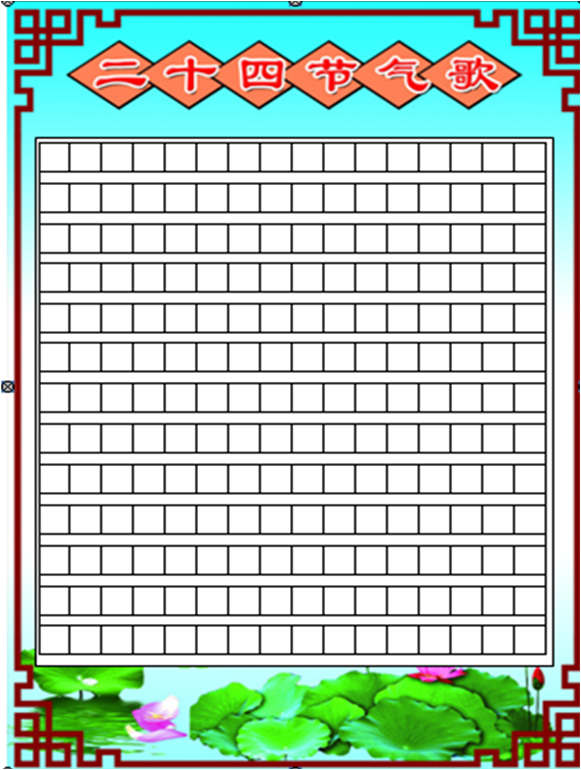 和父母、伙伴一起学唱节气儿歌,记住24节气,并且认真誊抄歌词。