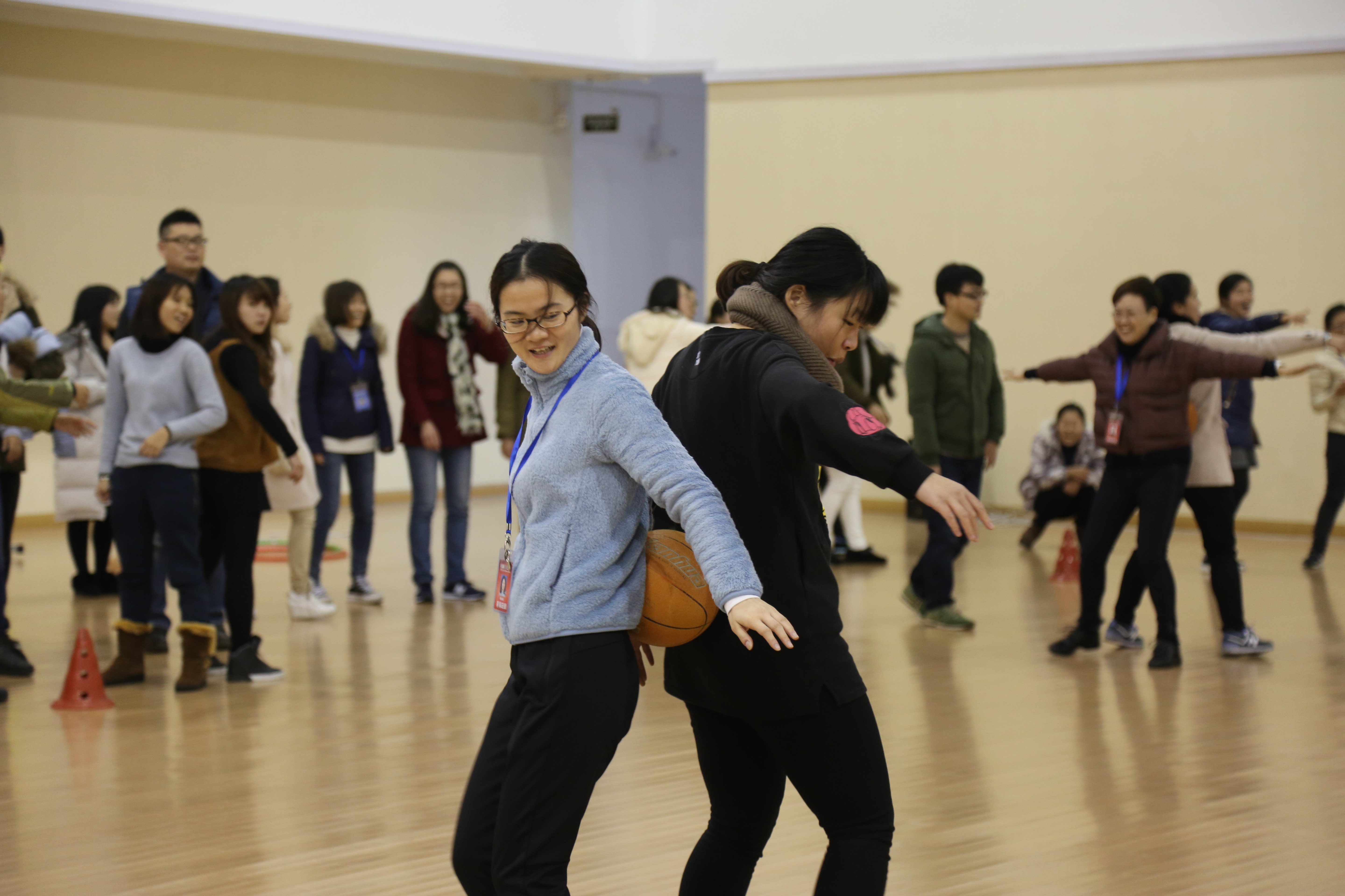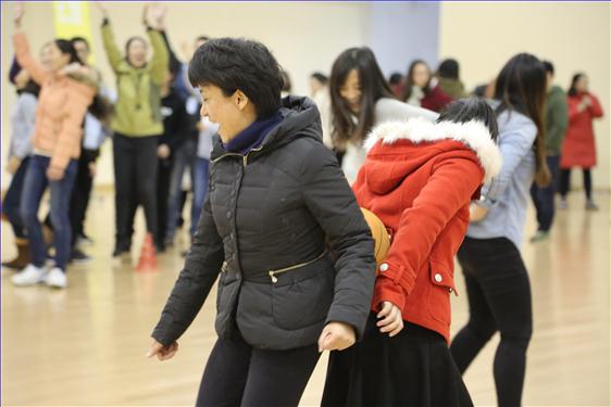 尽管冬日里寒气袭人,但丝毫挡不住比赛的热情。大家兴致盎然,早早地就到达比赛场地,抓紧练习各个项目,讨论各项比赛技巧,认真进行赛前热身。本次运动会设有踢键子、跳绳、拍粽子球等单项比赛,也有心心相印、团结一心、逆向思维等多项精彩的团队项目。