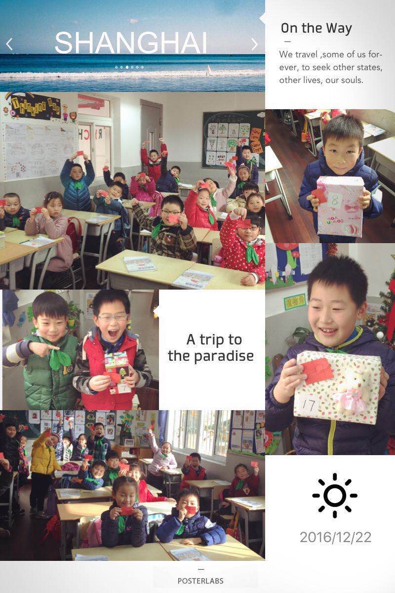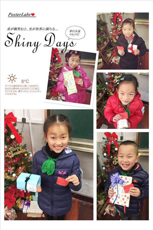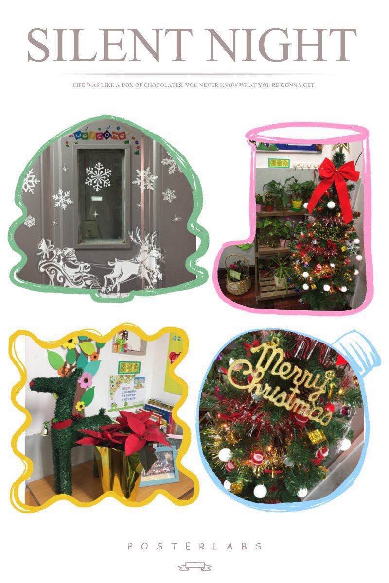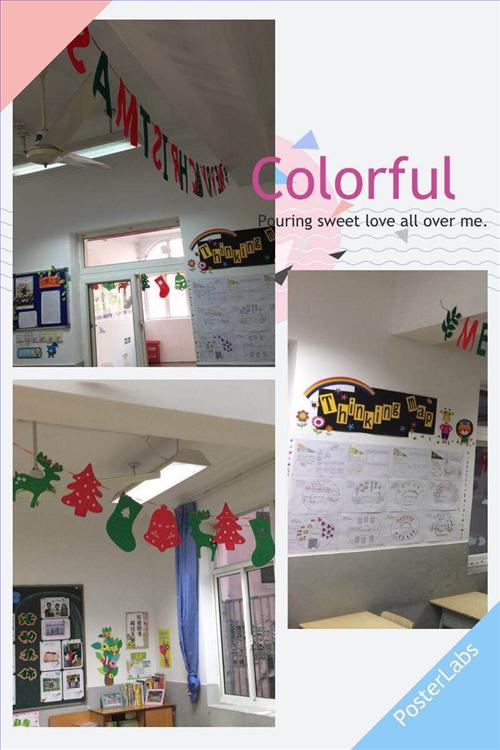 2016年圣诞即将来临,这是老师和同学们在一起的第二个圣诞节,按照惯例,老师们和孩子们早早地就把教室装扮一新。圣诞挂饰、圣诞花、圣诞树、雪花、驯鹿、花束等,一应俱全,圣诞礼物整齐地堆放在圣诞树下。还有还有,孩子们自制的Thinking map和创意全家福在黄老师精心安排下,有序地贴在班级的四处,让整个教室显得特别美丽温馨。此时此刻,我们要特别鸣谢后援团妈妈们,她们自发提供的各类装饰材料,为班级默默奉献!