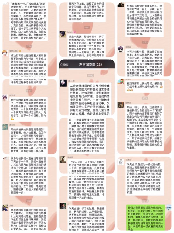 会后,与会的党团员在学校的微信平台上纷纷发表自己的即时感言,道出了各自的观点和收获。