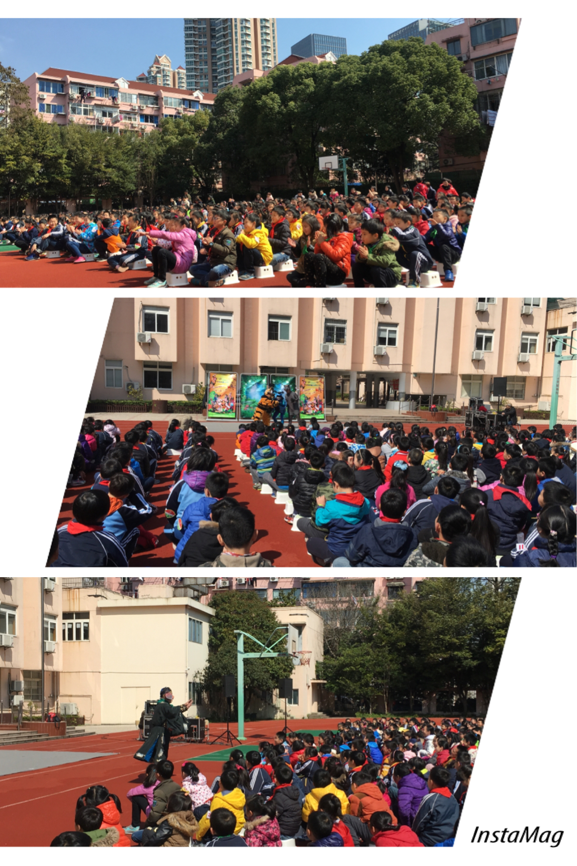 这不,山西省京剧院的“齐天大圣”和他的伙伴们带着舞台神话剧《小话西游之“齐天大东方小学圣大战白骨妖”》来到我们东方小学啦!3月14日在蓝村校区上演,3月15日在懿德校区演出。孩子们甭提有多高兴了,暖暖的阳光照得操场上的草地格外柔软,同学们一上完第二节课,就排着整齐的队伍来到了操场上。没有太多的布景,没有绚丽的灯光,却一点也没影响同学们看演出的兴致。