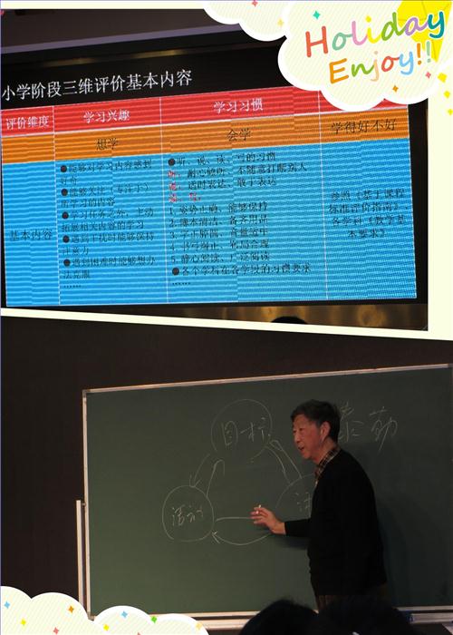 愉快所这次组织的评价专题研究经验分享培训,阵容强劲,视角丰富,素材实用,精彩纷呈。汇报学校发言的标题及其内容足够吸引参训老师的眼球——一师附小的《多元化评价,提高课后辅导实效性》、《设计有效评价,促进小组探究学习》、《依托电子平台,优化课堂日常评价》;威海路第三小学的《以“等第制”评价改革为契机,发展以学生为本的评价体系》;陈鹤琴小学的《让评价成为师生腾飞的翅膀——英语学科综合评价实践初探》、《通过阶段性评价的不断改进,做真正有用的评价》;静安一中心的《评价:让我们倾听核心素养落地的声音》,刘正言老师作的学术报告《教育评价的起源、流派及其应用ABC》。这些教育评价领域的实践案例,有校级管理层面顶层设计的,有学科教研组群体操作层面的,有学科学段和学时个体操作层面的……林林总总,无不洋溢着行动研究的智慧光芒。专家的报告高屋建瓴,很有学术的高度、实用的精度和实践的效度。