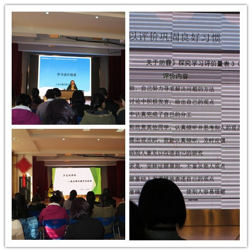 38日和315日两个工作日的整天,东方小学的骨干教师、学科主管和行政人员一干近20人,出席参加了由上海愉快教育研究所组织、在静安区第三中心小学礼堂举办的学习设计成果发布和评价专题研究经验分享的主旨培训。