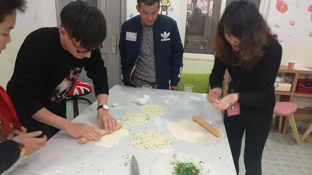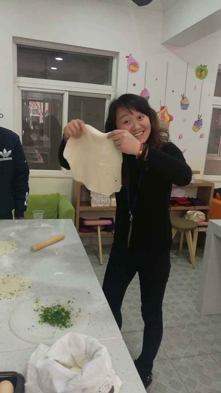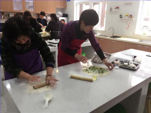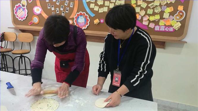 星期五下午,教师快乐烘培社团又有新活动啦!这次不仅有美味的瑞士卷,还有老上海的味道——-葱油饼。这次,刘娟老师把她的看家本领带入了烘培教室,让在场的所有老师都一饱口福。只看见面粉团在她的手中擀成薄饼,那青葱轻盈地洒在饼上,煞是好看;一捏,二揉,三卷,最后压一下,一个葱油饼就初步完成了,简单加工下就可以进油锅了。不一会儿,香喷喷的葱油饼就出锅了,老师们你一块我一块品尝着,根本停不下来。