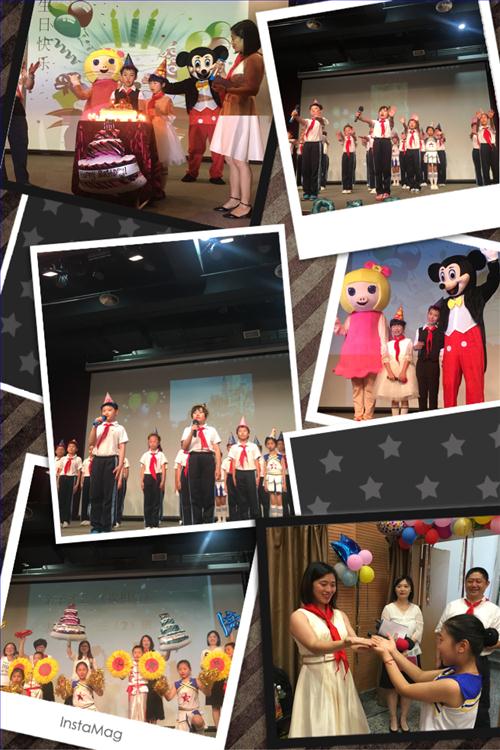 为了能把这次生日会办好,朱慧娟老师和组内的班主任:邱勤、王维洁两位老师在几个月之前就开始策划了。当朱老师与家委会的家长们沟通生日会的策划方案时,家长们都纷纷积极响应。三(2)班席培航同学的妈妈作为总监进行了分工:有的家长帮忙设计会场,有的家长帮忙撰写主持人串词,还有的家长联系制作生日蛋糕,很多家长都愿意出一份礼,充当一回志愿者。为了布置会场,老师和家长放弃了周末休息时间,提前到现场调研。演出当天,大家更是一大早就来布置,一直忙到中午,午饭都没有来得及好好吃上一口。老师们和同学们更是为了这神圣庄严的一刻紧锣密鼓地准备节目,为了追求完美的舞台效果,不知道排练了多少遍,不放过每一个细节,不断打磨节目。