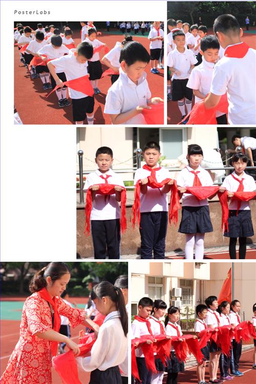 大队辅导员宣布了入队名单后,在全校师生的期盼和祝福下,大家唱起了中国少年先锋队队歌。高年级友谊班的大哥哥大姐姐们和辅导员把鲜艳的红领巾送到新队员的手中。在《红领巾之歌》的歌声中,队员们佩戴上了红领巾,成为了一名光荣的少先队员。队员们双手小心地抚摸着胸前的红领巾,个个神采奕奕,激动不已。