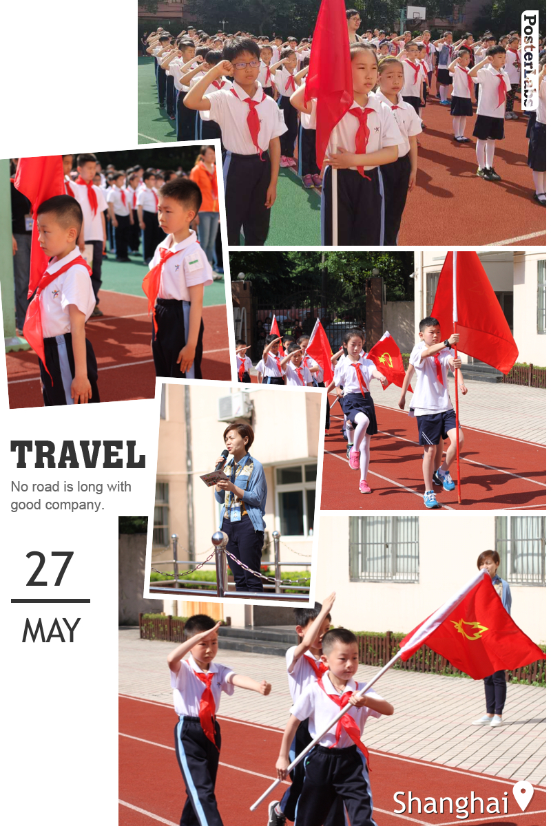 《我是少先队员》课程的优秀学员还当上了光荣升旗手,精神抖擞地走上升旗台,将五星红旗升上旗杆顶端,让胸前的领巾和国旗一起飘扬。