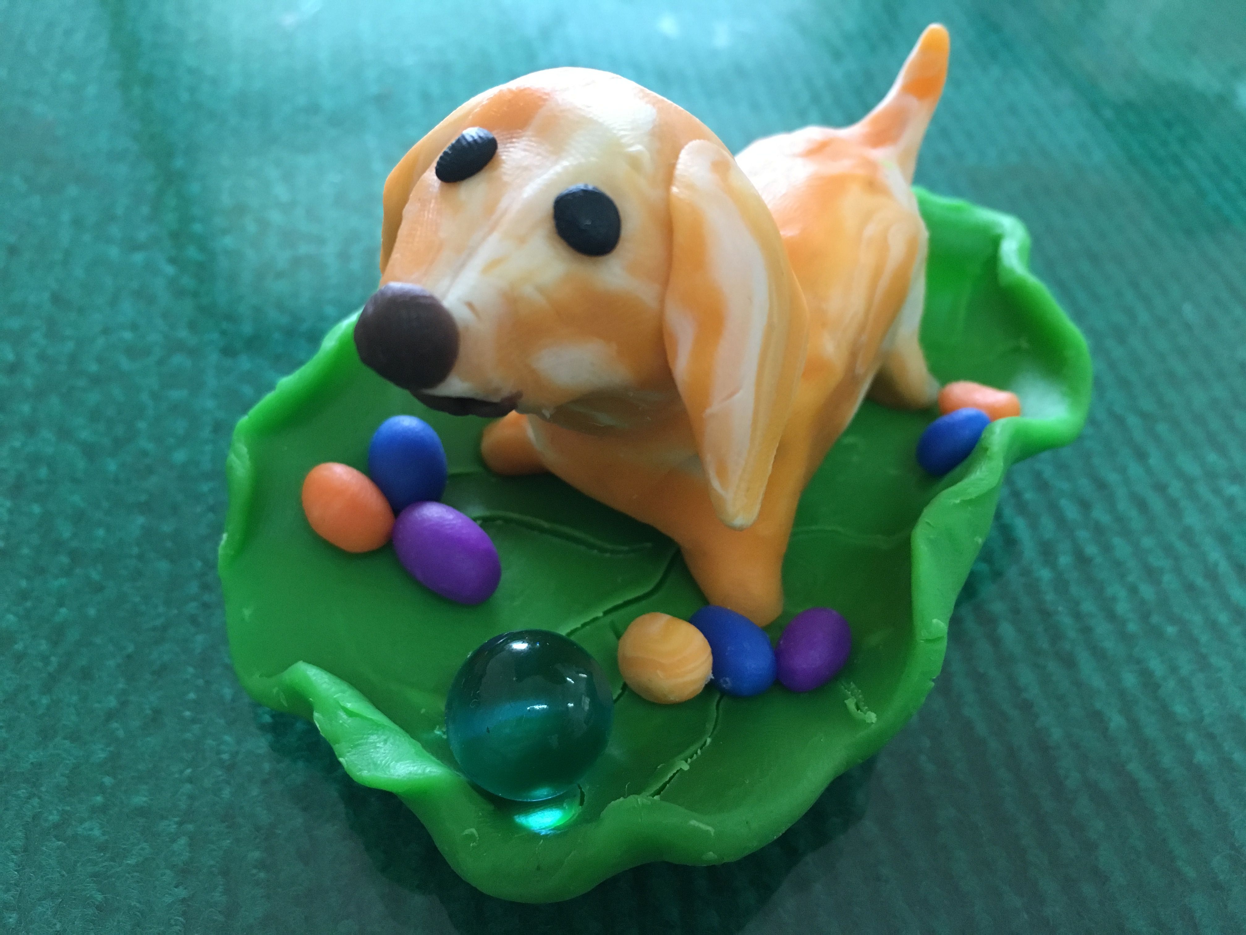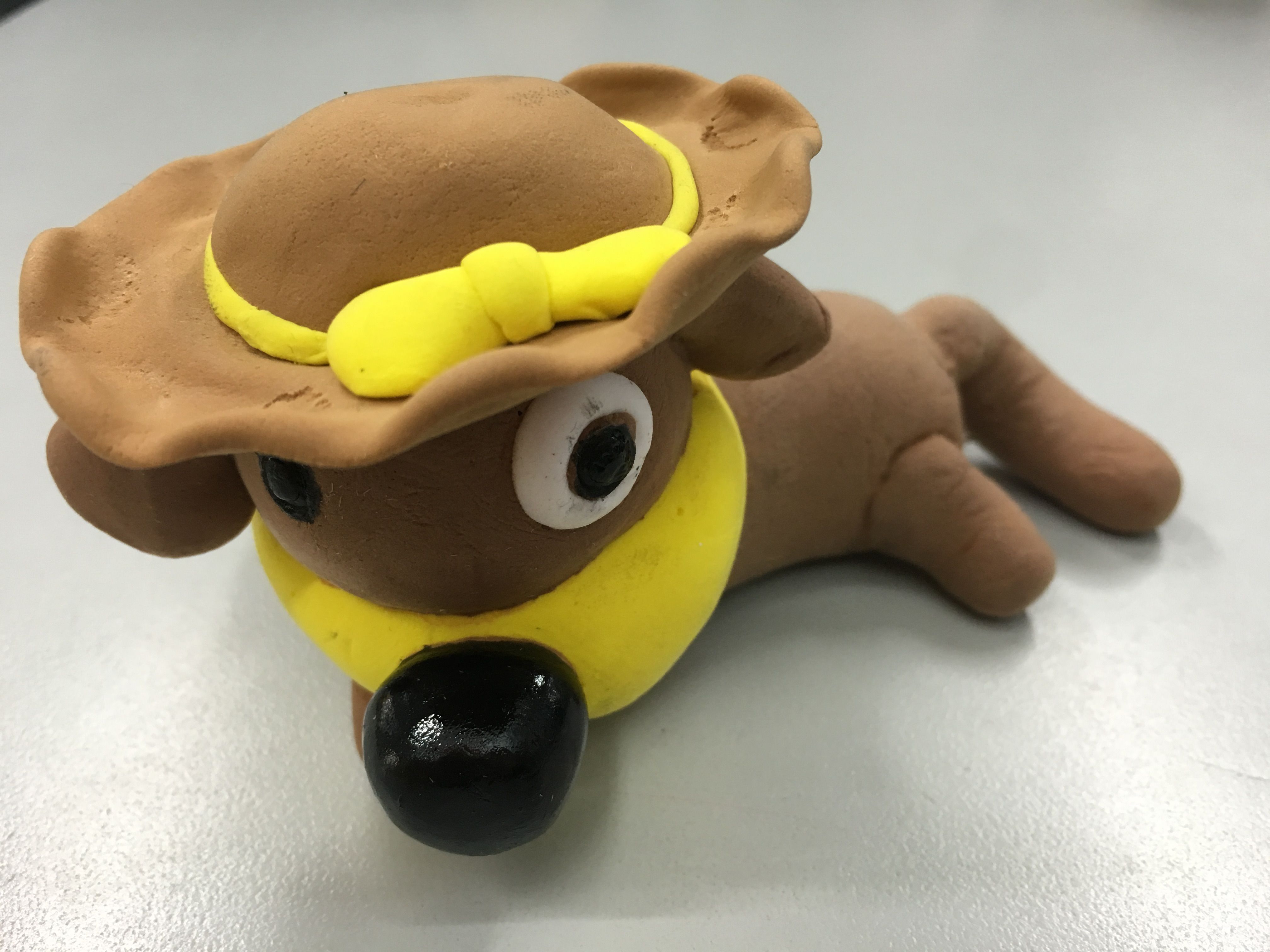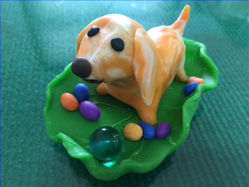 有的是用彩色粘土捏出的小狗,颜色鲜艳,稚态可掬