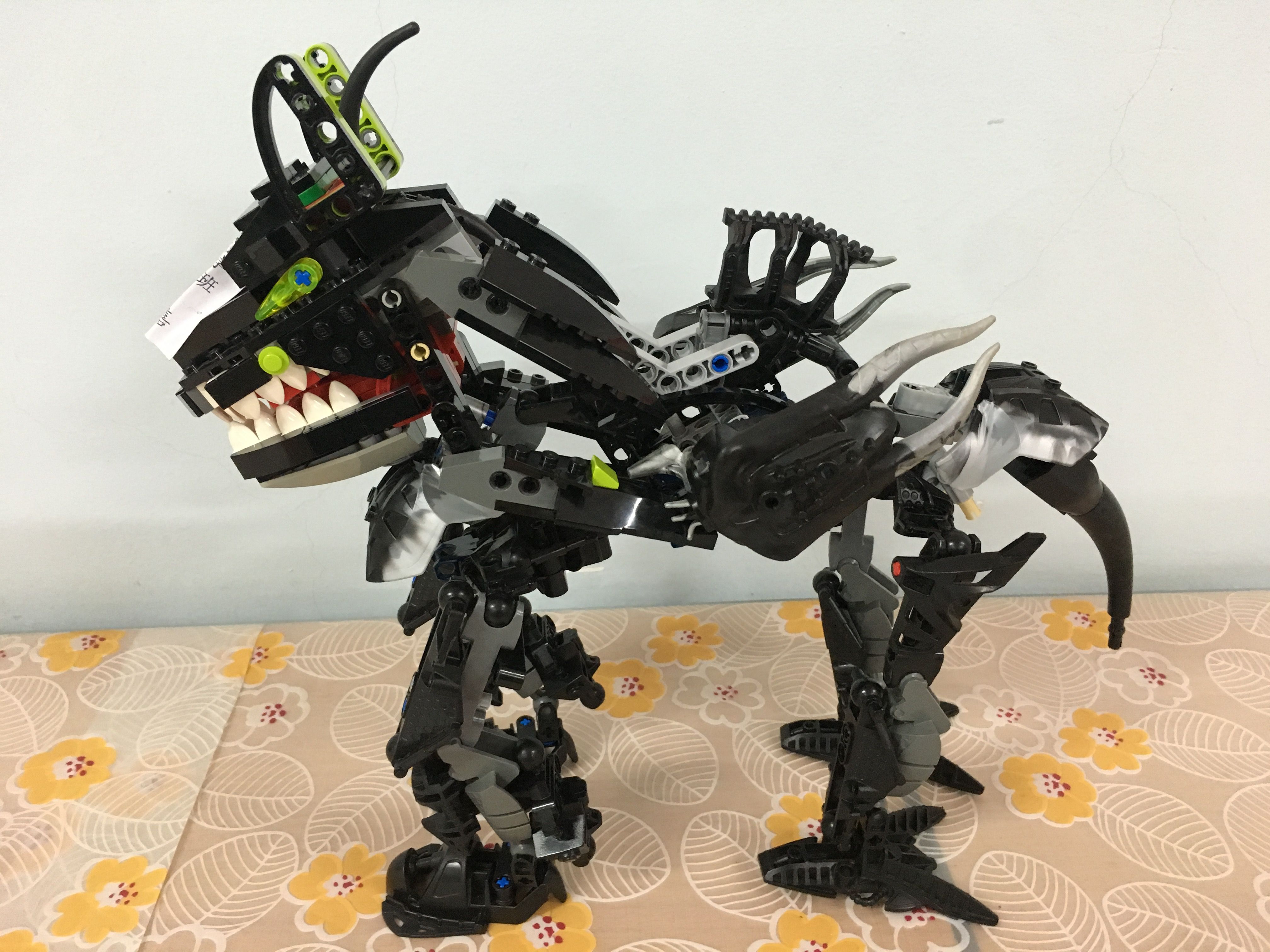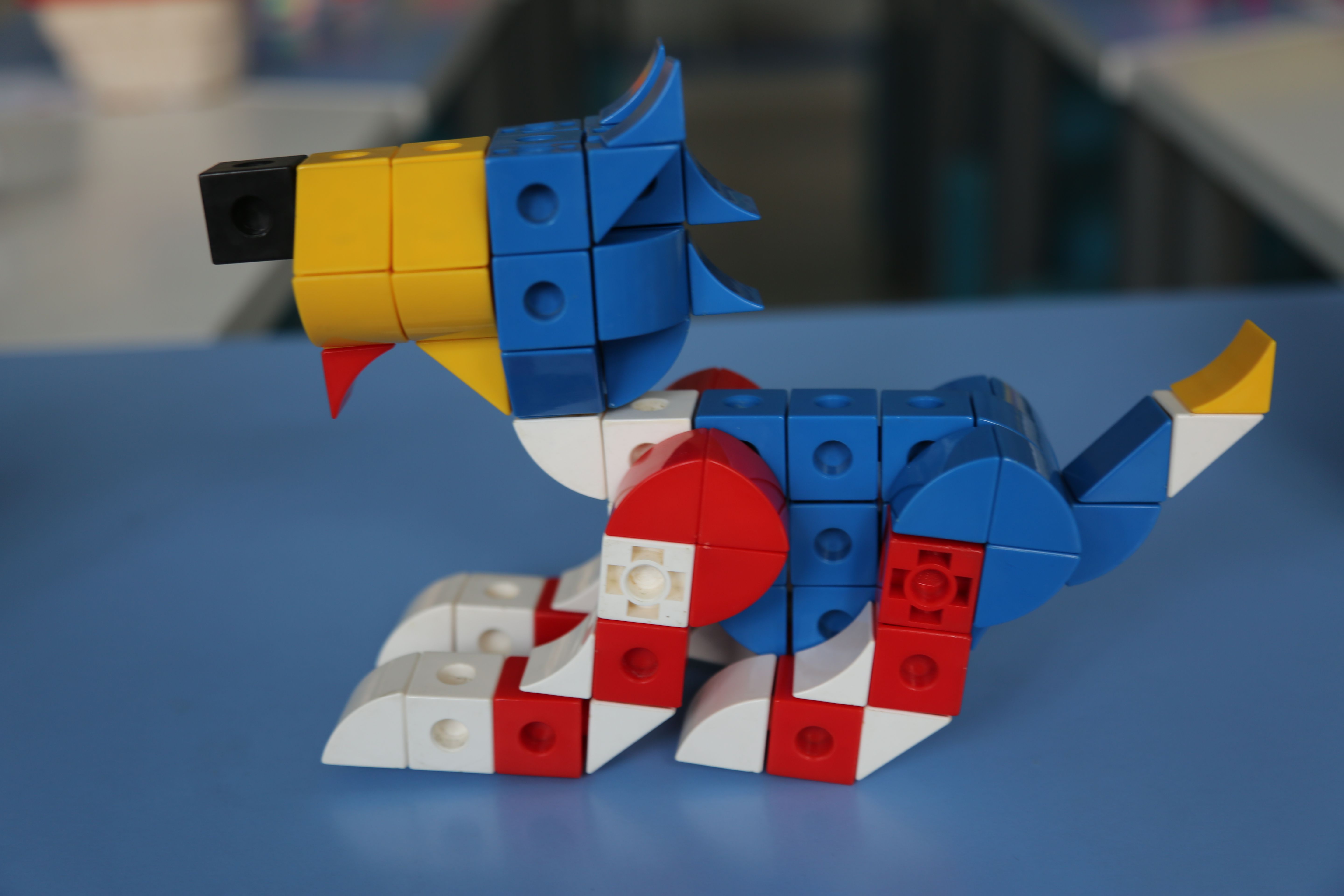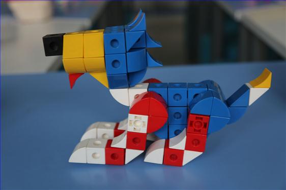 有的是用乐高积木拼装而成的积木狗,拉动它的嘴巴,还能发出声音