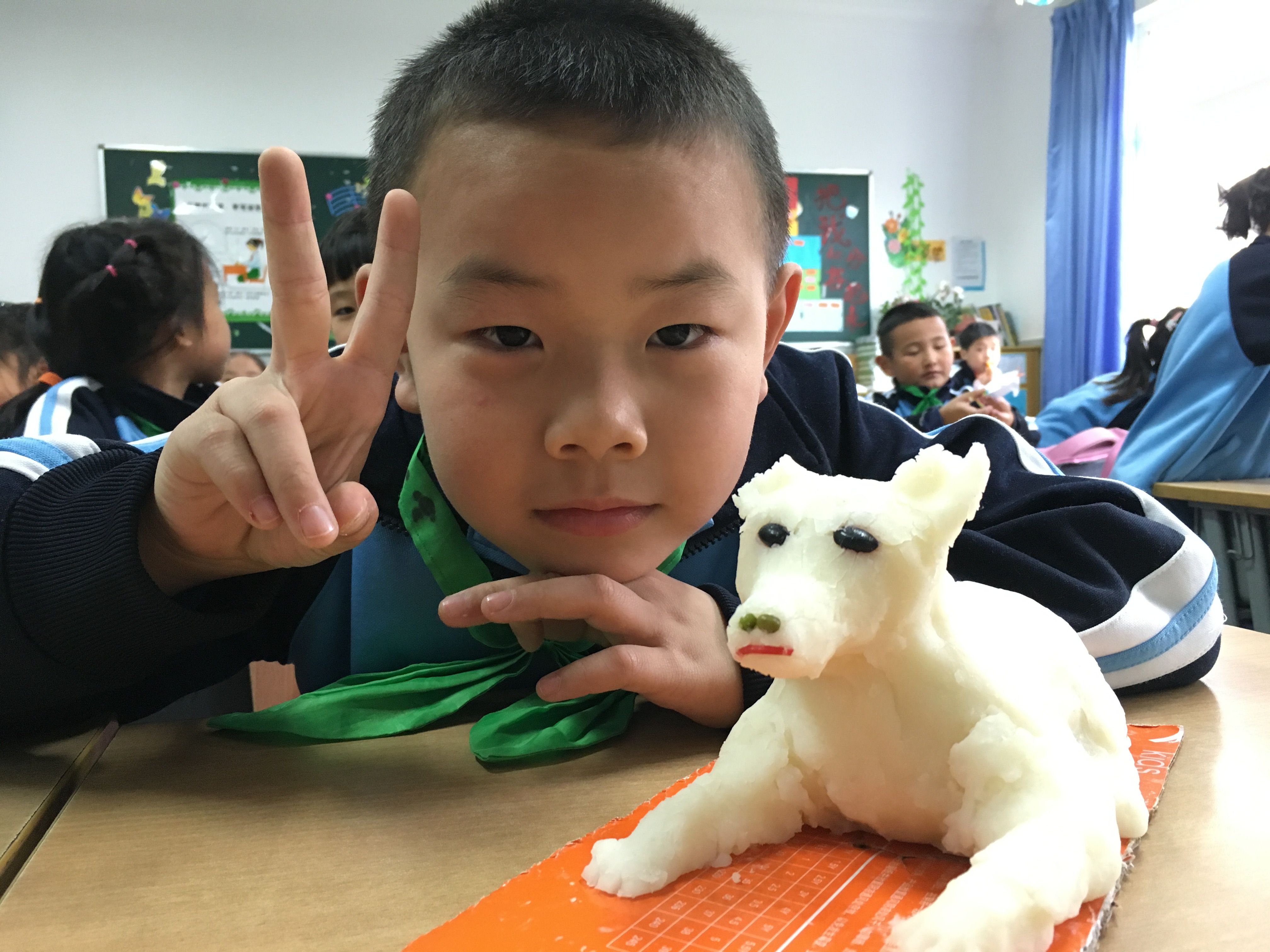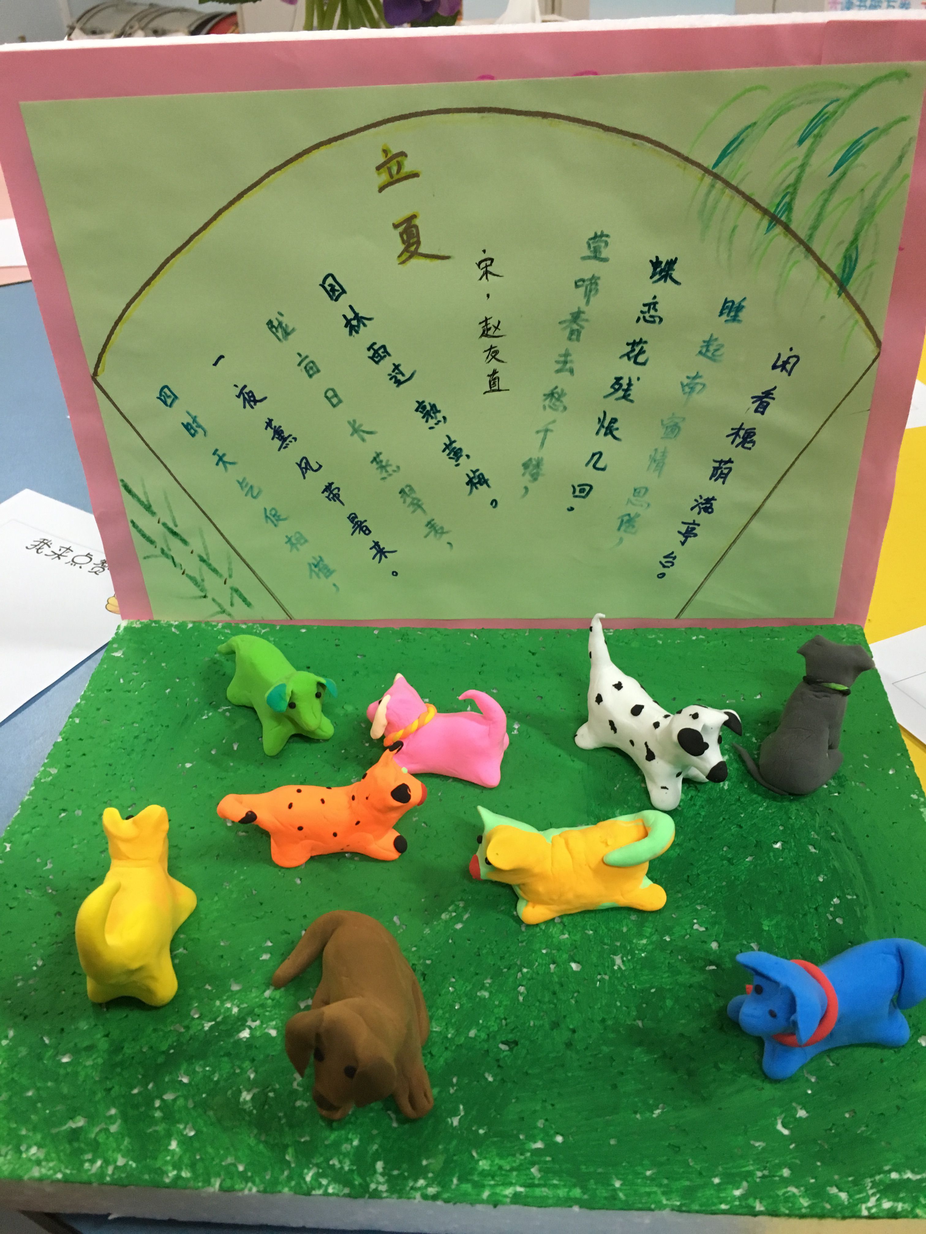撞蛋的兴奋和快乐还在回味,创意立夏狗制作大赛又拉开了序幕。因为一过立夏,很快就将进入农历五月,过去认为五月为霉月,容易得病。故在立夏那天人们流行让小孩子吃立夏狗,寄寓他们能像狗一样强壮。有句俗语叫吃了立夏狗,东南西北走。人们用糯米粉做成立夏狗,蒸了之后让孩子们吃。于是,我们就开展了创意立夏狗制作大赛,用不同的材料来制作立夏狗。