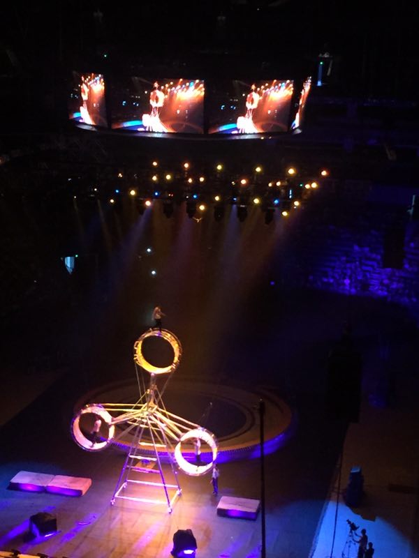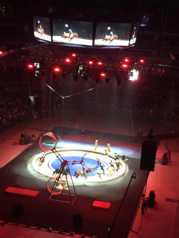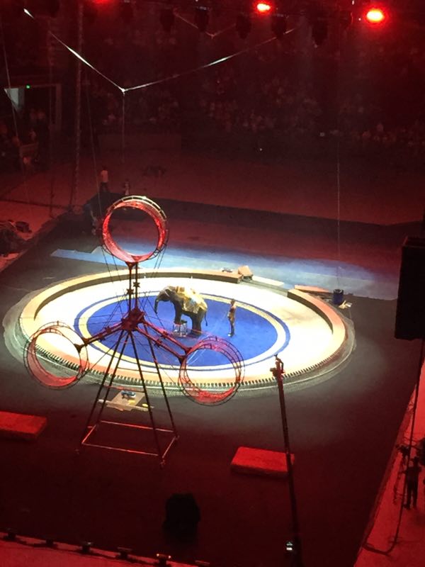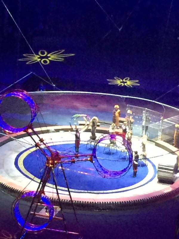 渐渐地,场内的灯光暗了下来,场内一下子欢呼起来!随着神曲——小苹果的响起,中外演员踏着欢快的脚步与观众们见面,此时场内的孩子们也情不自禁地也拍起了手,场内一下子欢腾起来。接下来的马戏表演更是精彩纷呈,让人目不暇接。这次,演出主办方盛情邀请了世界上最优秀的马戏表演团体集结上海,由中国、俄罗斯、吉尔吉斯斯坦、白俄罗斯、乌克兰等国马戏高手组成,他们精心策划、筹备一年之久。演出的动物明星有各种孩子们喜欢的动物:小狗做算术、大象吹口琴、狮虎争霸、熊出没、齐天大圣和喜羊羊等都为小朋友献艺,让大家对驯兽员产生了深深的敬意。除了动物明星,多名国际小丑艺术家,为小朋友们表演了互动性强、捧腹不止的滑稽节目!世界最高水平的吉尔吉斯马术表演团队献上最震撼的马术表演。另外,他们还有惊险的高空飞轮表演,飞轮飞速旋转,表演者却要在没有任何保护措施的条件下,在飞轮内、外做出蒙眼行走、跳绳等各种高难度的惊险动作,表演者在飞轮上迈出的每一个脚步,都是在向生命发起新一轮的挑战,引起场内观众的一次次惊呼声和雷鸣般的掌声,不少孩子激动地站起身,惊叹道:“好厉害呀!我的小心脏都要跳出来了!叔叔们太了不起了!……
