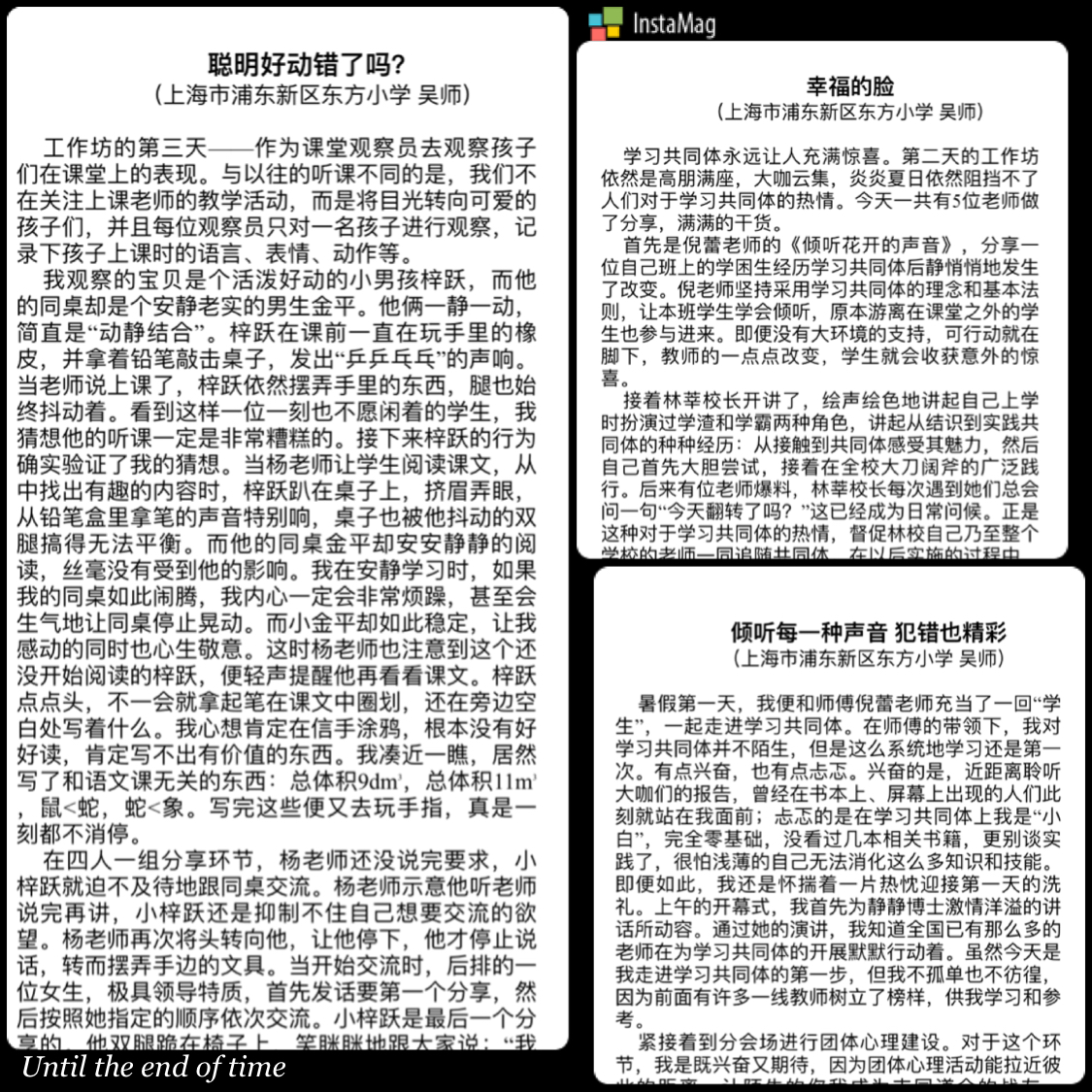 四天的培训是收获满满,研究坊的培训中还有一个重要的环节——申请学习共同体领航教师。倪蕾老师结合自己的实践、收获、学习,向研究坊提出了申请,撰写了近4千字的申请报告。两位老师每天都会将当天的学习收获记录下来,4天的培训,两位老师都转写了近6000在的感想。正如吴老师写的一篇心得的题目一样《感动 行动》,感动之后,是行动。在学习共同体的结业典礼上,两位老师都拿到了结业证书,倪蕾老师还拿到了学习共同体领航教师的资格证,代表着要继续成为学习共同体的实际者和研究者。看到不等于学到,学到不等于做到。只有去做,去观察,去从课堂的现场找到有效的证据来证明,验证学习共同体的理念;只有去实践,才能真正感受到学习共同体的魅力;只有努力去改变,才能改变课堂,改变学生,让学习真正发生,让学生有高品质的学习。