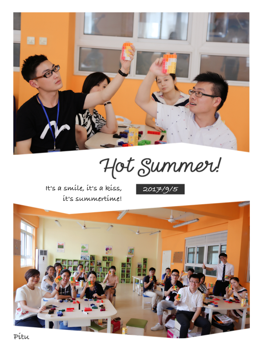 在拼图比赛的环节,老师们发挥了自己的动手能力,还有无限的想象力。一种拼搭方法刚被发现,另外一组老师就发现了新的方法。你来我往,每个大脑都在高速运转……听!这组又传来了欢呼声,一定又成功想出了一种搭法,整个教室中弥漫着创意的灵感!