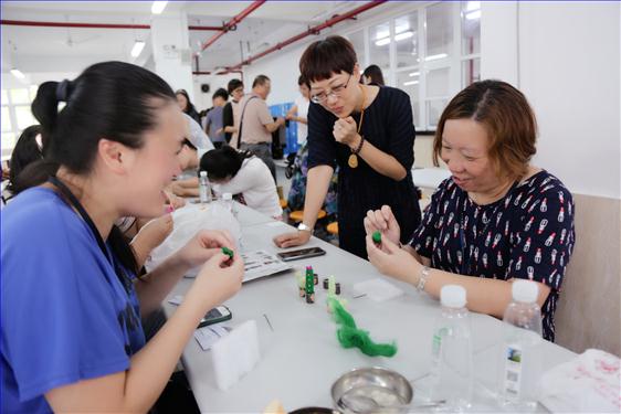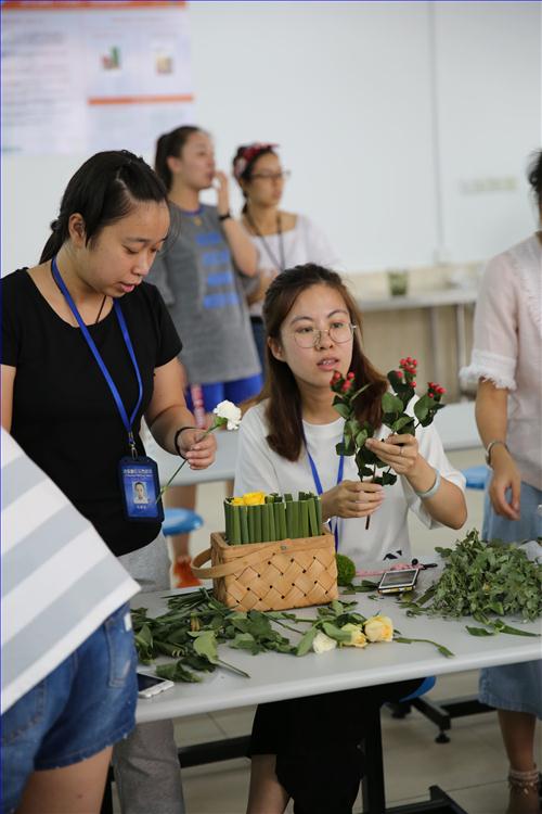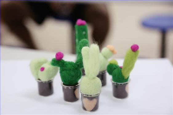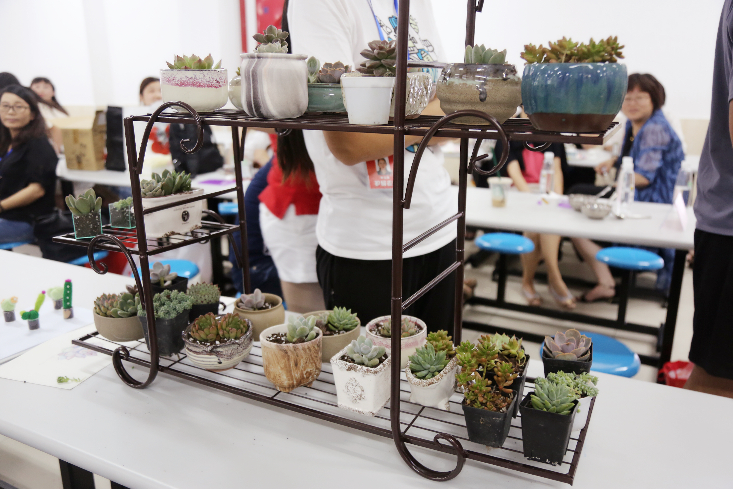 第一工会组在刘娟老师的指导下,现场学做葱油饼,场内芳香四溢,等待品尝的老师排起了长龙,受欢迎的架势不亚于“阿大”葱油饼。第二工会组的老师,用书画作品《我们要做这样的老师》来向教师节献礼。第三工会组的老师个个都是能工巧匠,他们动脑、动手,现场组装的电脑底部支架,给低头一族带来了便利,着实让大家羡慕不已。烘焙就像生活中的甜味剂,是一个将自己对生活、对亲人、对朋友的爱,一点点调和、发酵、烘焙的过程。第四工会组在王维洁老师的带领下,给大家呈现了精美的西点,与第一工会组的葱油饼交相辉映。第五工会组是花式编发,由“造型师”给“模特”打造不同的编发造型,吸引了众多爱美的年轻女教师。第六工会组的“插花”作品,赋予了每朵鲜花以灵动,给大家带来美的享受。第七工会组以音乐老师优美的演唱为主,伴随大家简易的打击乐……新颖的编排赢得大家掌声阵阵。第八工会组是现场制作发饰,精美的发饰和第五组的花式编发相得益彰。第九工会组是“多肉文化”展示。通过现场种植多肉盆栽、制作毛毡多肉戳戳乐、水溶性彩铅多肉绘画,多肉支架的设计和组装……融植物与艺术为一体。