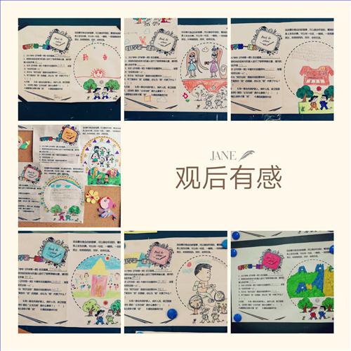 不满足于将活动资料纸上的问题回答正确,不少学生还在纸张周围画上了日月星辰、花草鱼虫作为装饰。活动资料纸五颜六色的,童趣盎然。也许孩子们看节目时心情就是这么愉悦吧!