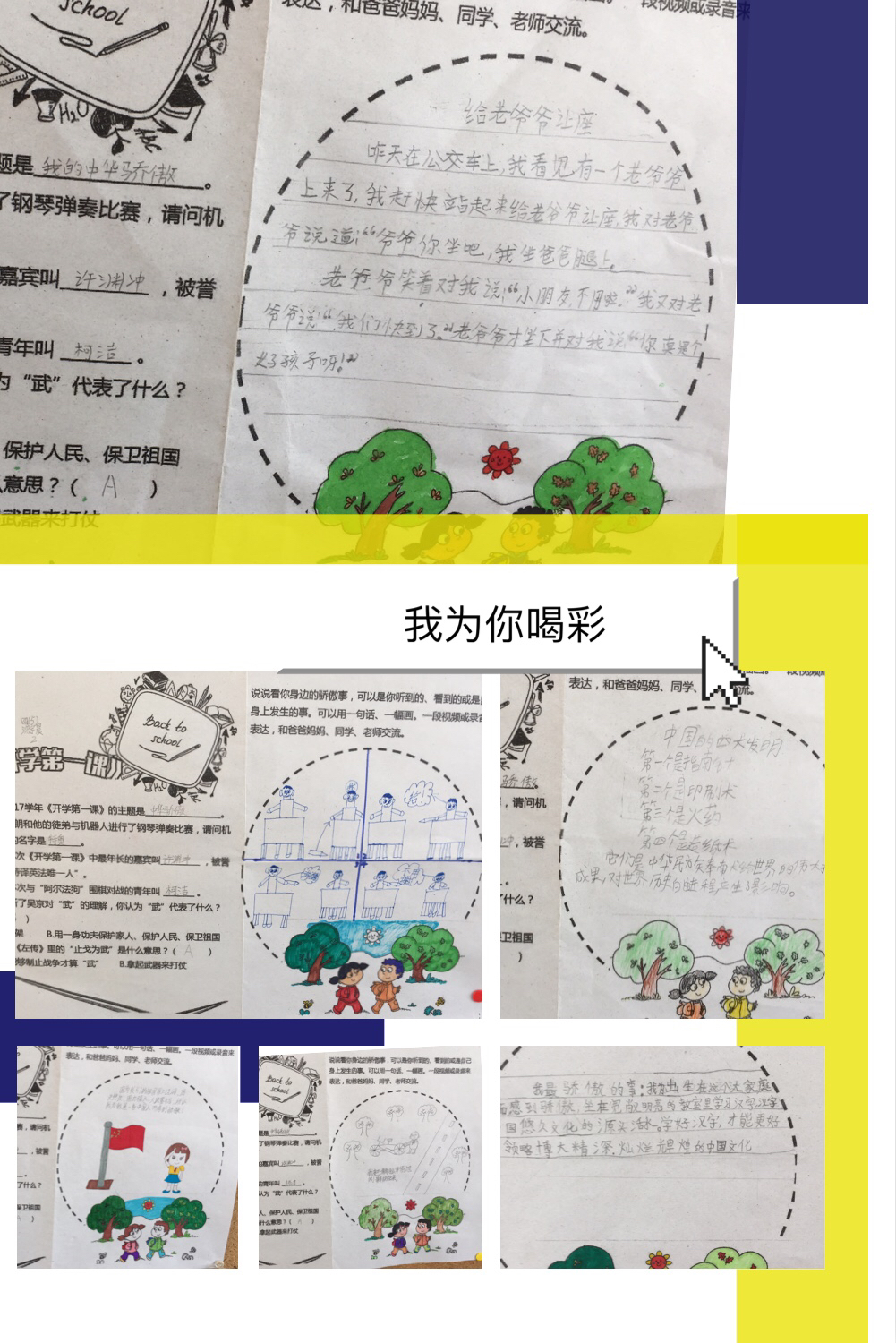 “独乐乐不如众乐乐”,9月13日的十分钟队会上同学们进行交流反馈,其中最精彩的莫过于同学们分享自己的骄傲事了!视频、作文、图画。形式多样,内容丰富,承载的是孩子们一颗颗的天真童趣的心。