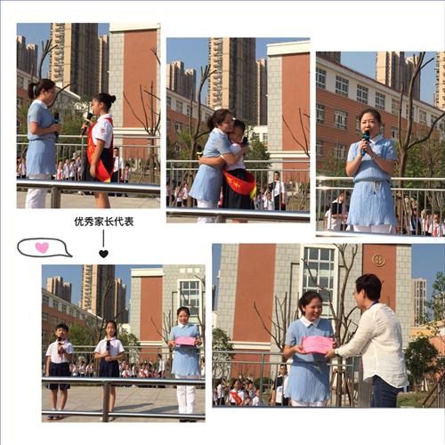 升旗仪式上校领导分别为两个校区的优秀家长代表秦元心小朋友的妈妈、龚雯鈊小朋友的妈妈颁发优秀家长证书,两位优秀家长代表在颁奖仪式上向大家做了获奖感言,懿德校区秦元心妈妈在发言中讲到学校举办的育儿讲座、开放课程等活动对家长来说是很好的学习,能够以身作则的告诉孩子学习可以让自己变得更完美。秦元心听完妈妈的发言后表示自己感谢妈妈的付出,今后会更努力地学习,母女相拥而抱,气氛达到了高潮。
