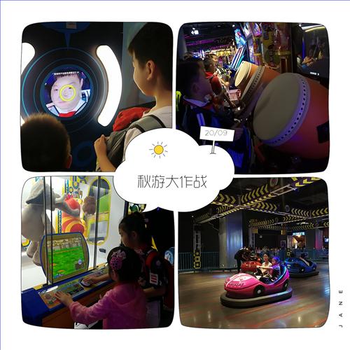 世嘉头文字D赛车,排队排得最久的就是它了,小男生们都冲着这个项目来玩,排了近1小时的队。可以一人或两人乘坐载体,进行汽车的模拟赛,根据汽车前面的大屏幕的影像,车体会随之摇晃,给小朋友们有一种真实进行赛车的感觉。