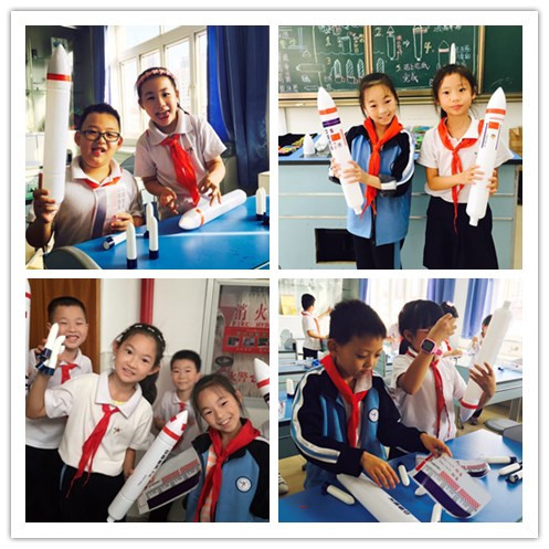 学生很快就被迅猛龙老师、美人鱼老师幽默风趣的语言吸引住了,整堂课在老师的耐心引导下,配合着有趣的提问,使学生在师生互动游戏中了解了火箭在太空里飞行的原理。在制作水火箭过程中,两位老师不仅使学生获得了动手操作的机会,增强了动手能力,更是在活动中学到了牛顿定律的基本原理,为下一次发射长征水火箭作了良好的铺垫。通过参加本次科技活动,学生和老师体验了一回不一样的科学课。课程实施中,台湾的老师们留下了许多孩子们合作配合、用心制作的生动而难忘的时刻,记载了科学课上师生互动学习经历的丰富描述,教学板书思路清晰,极富个性与魅力。