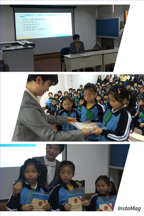 第二个讲座是由二(3)班姜福朗的妈妈为我们带来的。姜福朗的妈妈是一位就职于律师事务所的专业律师。她带来的讲座主题是《小学生法律知识讲座》。她和我们分享了法律的概念、未成年人为什么要学习法律、小学生最需要学习那些法律知识等等问题。期间,为了使讲座更容易理解,还给我们二年级的小朋友们讲解了几个案例,小朋友们听得津津有味儿。姜福朗妈妈还考虑到二年级小朋友的特性,还把法律知识和小朋友喜欢的儿歌相结合。学生们个个都乐在其中,在儿歌中寻找学习法律的趣味儿。最后,姜福朗妈妈还特意带来了《未成年人保护法》、《义务教育法》和《妇女儿童权益保障法》三套法律书籍分别赠与了二年级的三个班级。让孩子们可以在课余时间多多接触法律知识。