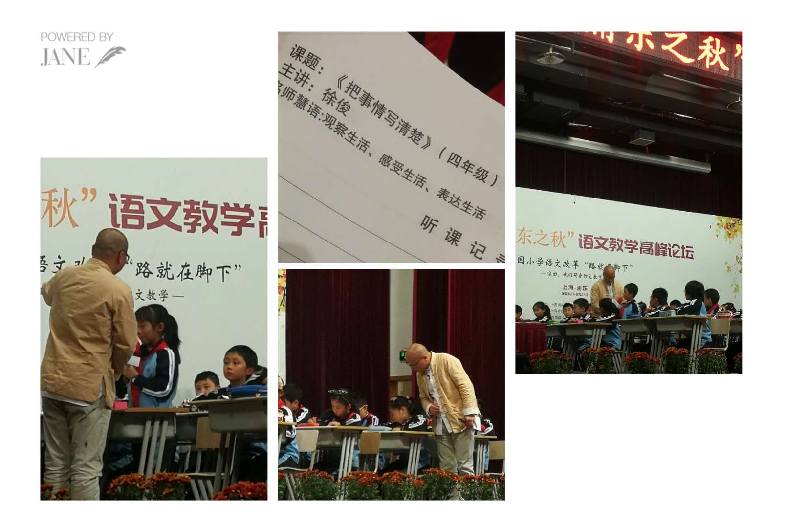 为期两天的“2017‘浦东之秋’语文教学高峰论坛”在沪于11月11日和12日举办,来自全国各地的300多名语文教师参加了此次研讨会。此次论坛主题为“中国小学语文改革路在就在脚下——这回,我们研究作文教学”。论坛特别邀请到了当前在国内小语界具有重要影响、卓有建树的教育专家发表各自的见解。来自江浙沪三地的语文名师分别展示了风格各异的示范课。大容量高密度的精彩分享,可谓酣畅淋漓,让我们受益匪浅。在这次研讨会中,我们东方小学蓝村校区的四、五年级学生有幸参与其中,受教于名师讲堂,孩子们出彩的表现也令台下老师啧啧称赞。