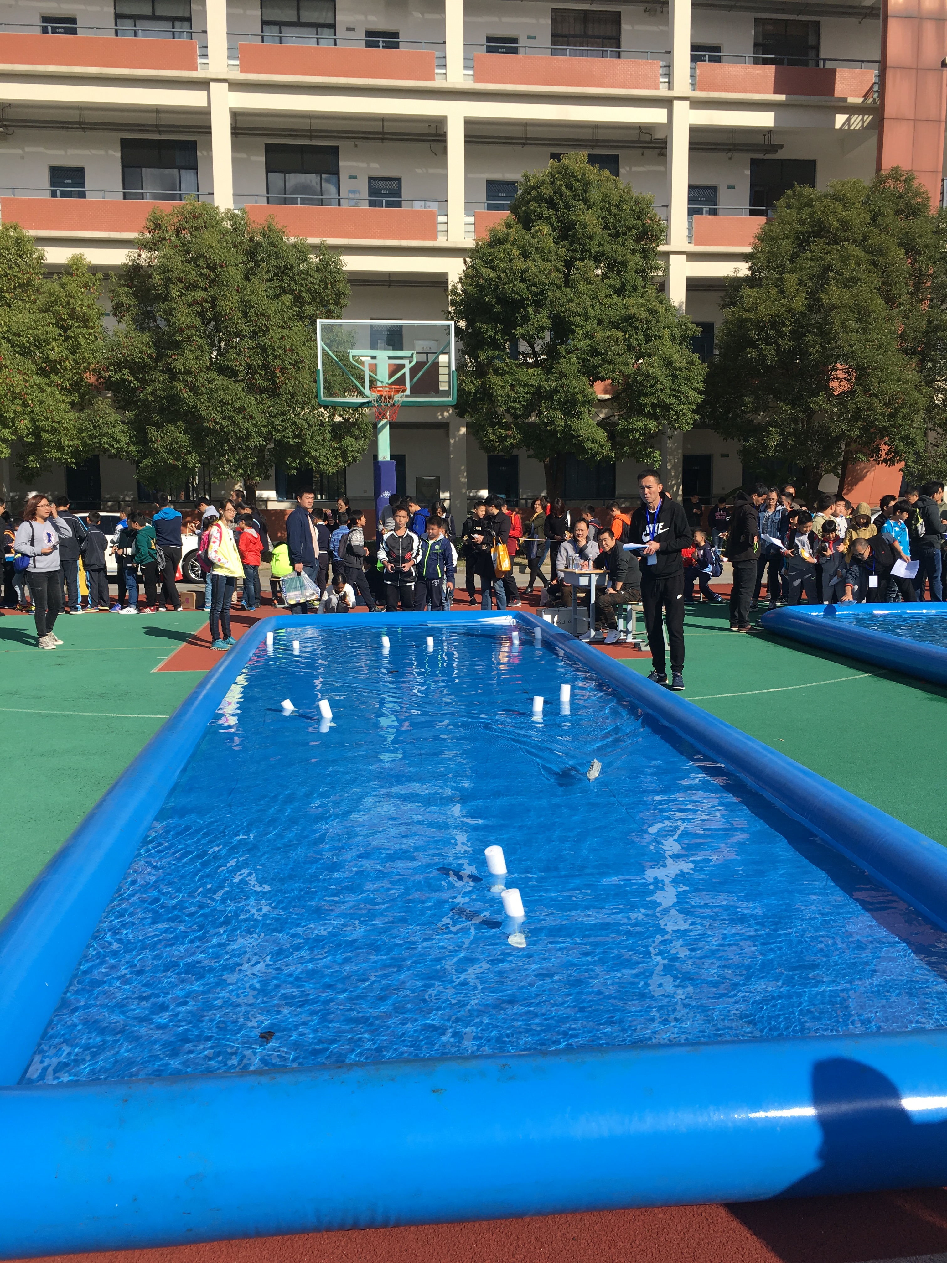 空模和航模选手们充满自信,放飞火箭和飞机,在天空中划出一道道弧线,操场上响起了阵阵欢呼声;船模和车模选手们手持遥控器精准操纵,将赛场记录一次次刷新!
