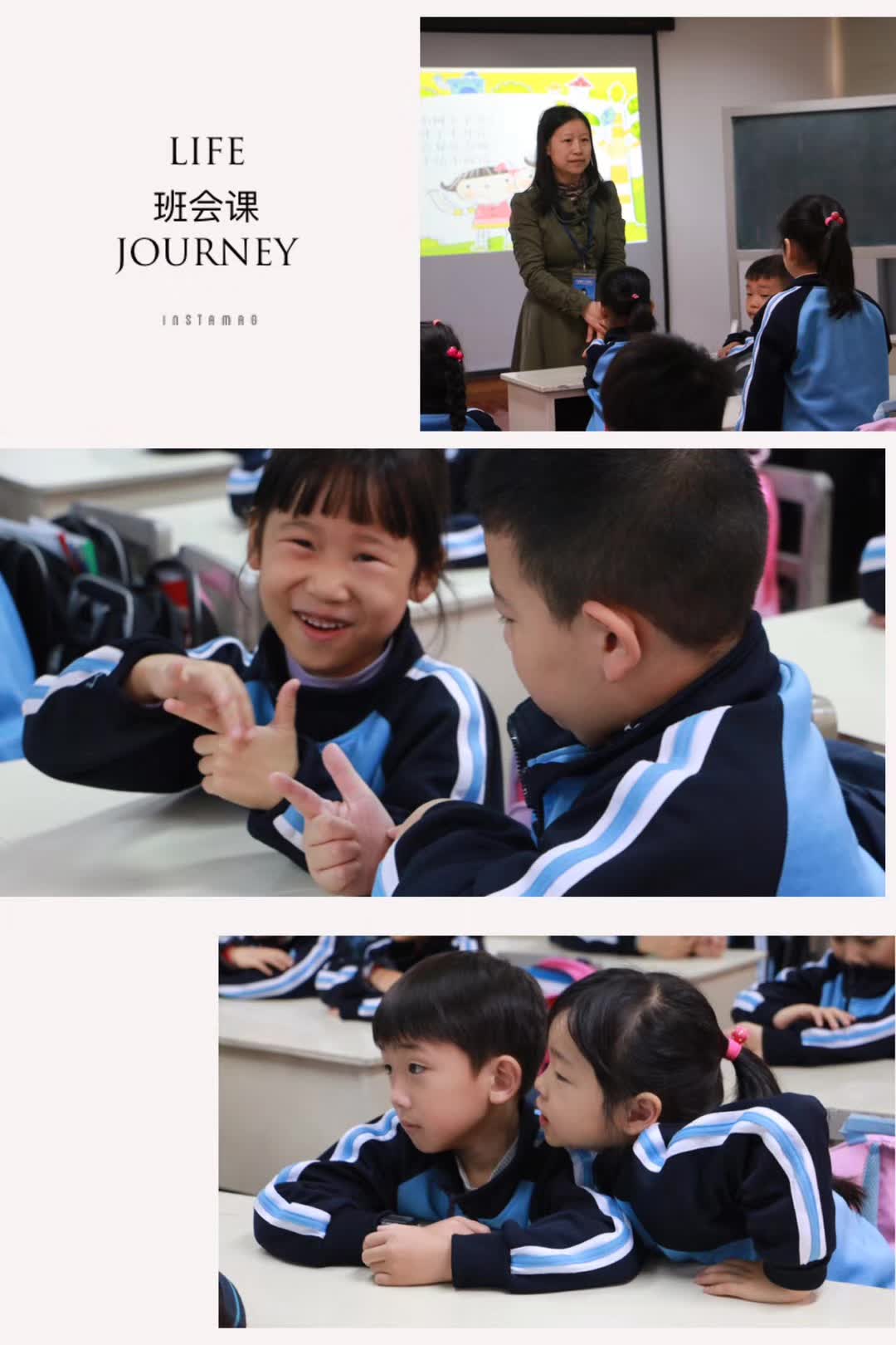 语文课上,陆老师用故事的语气,生动活泼的动画风格来讲述新内容;同学们全心投入,互相鼓励赞赏,沉浸在这样有趣互动的课堂中;马老师的体育课上,小朋友们欢快的身形跟着音乐似模似样地模仿小动物们,看着俏皮可爱。虽然只感受了一个多小时,但是能由衷体会到学校和老师是处处都用心在浇灌呵护这些小幼苗。