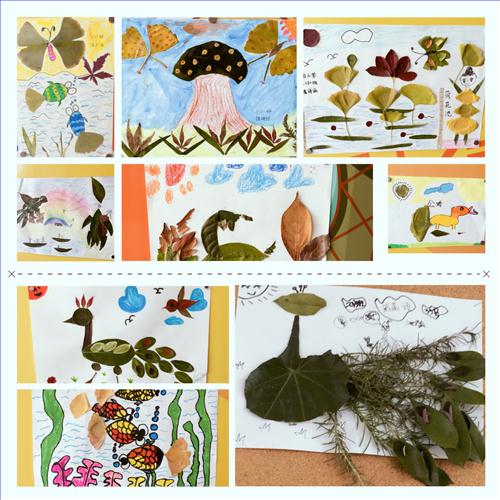 瞧,一二年级的小队员们,在校园中捡起美丽的落叶,用各种落叶作为画画的材料,原本已经凋落的叶子却在队员们的笔下又赋予了生命的光彩。队员们还在各自的教室里举办了小小画展,让更多的小伙伴一起分享别出心裁的树叶画。