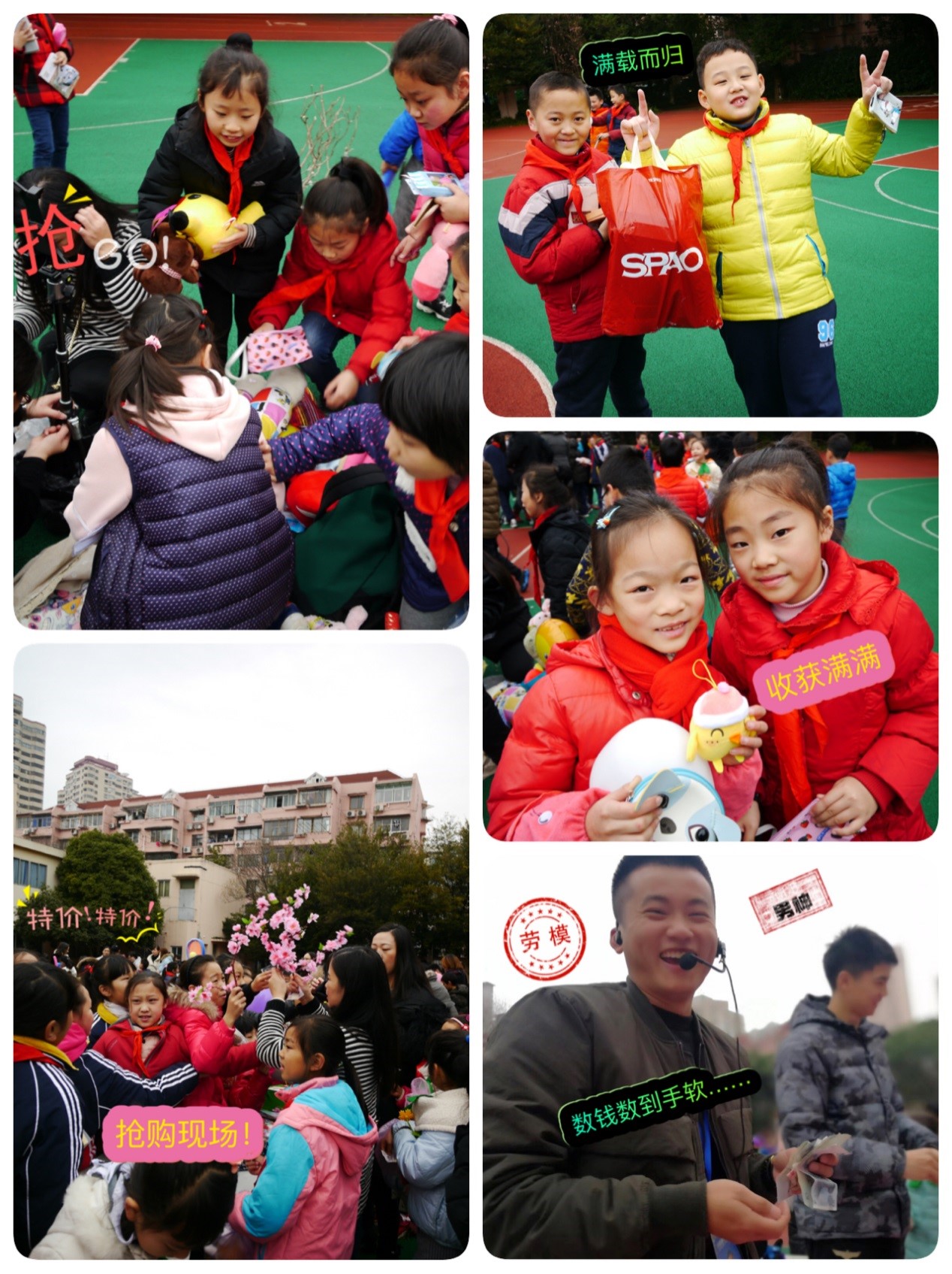 承担销售工作的同学们,发挥自己的聪明才智和语言表述能力,卖力地推销着自己的商品。为了让本班的销售额激增,有的同学举起扩音喇叭,大声吆喝“走过路过不要错过”;有的同学冲出店铺,小手举起商品介绍活动招来了很多顾客;有的班级采用了买一送一、买商品送糖果的优惠策略;有的班级则想出了满XX元减X元、满XX元送抽奖的好主意……。最给力的“特别促销员”当属教务处部倪蕾老师,她不停地用广播播送着各个班级的最新促销活动,给班级带来一波又一波的“销售小高峰”。最火热的店铺之一则是教师摊位,阳光帅气的钱嘉粱老师一马当先,化身伶牙俐齿的“销售达人”,铺位上的商品转瞬间被抢购一空!