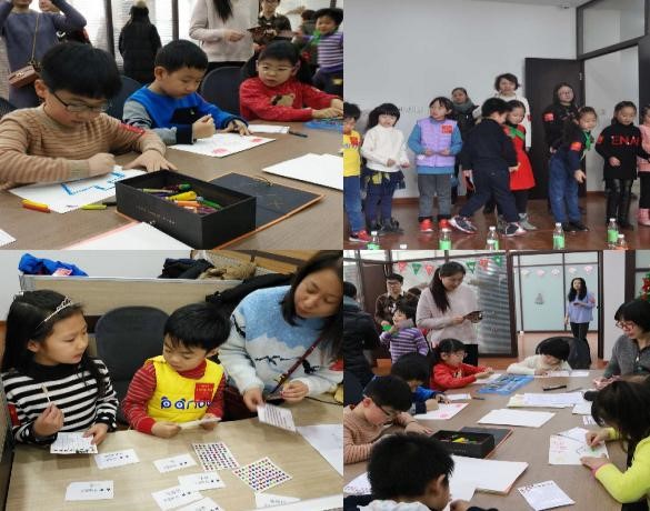 经过家委会成员两周的精心策划与布置,活动场地被布置得充满了圣诞节元素。挂满装饰和彩灯的圣诞树、墙上各种可爱的圣诞元素贴纸和拉花,以及播放的圣诞音乐,无不烘托出了浓烈的节日气氛。活动环节也被设计得丰富多彩,有根据上课内容出的快问快答,还有套圈游戏和桌上足球,以及迎新年主题的绘画活动。为了充分调动孩子的积极性,还精心设计了集星兑奖活动。家委会还准备了孩子们爱吃的各种水果和小零食,深受孩子们的欢迎。