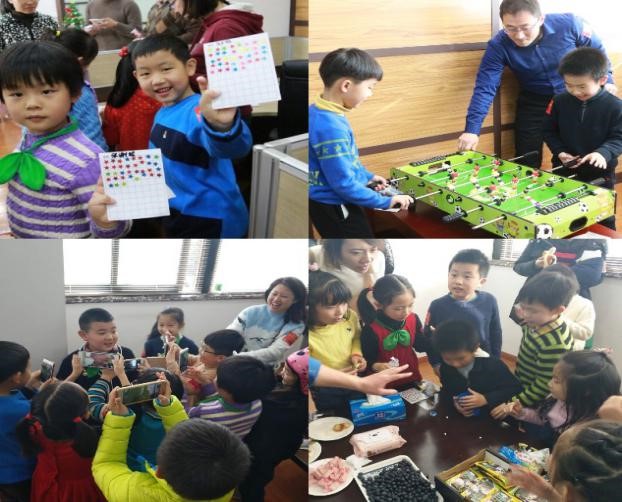对于放学后没有什么机会一起快乐玩耍的孩子们来说,这场活动无疑是个交流的好机会。屋子里的各个角落都充满了孩子们的欢声笑语。在游戏环节孩子们争着多拿星星兑大奖,有的孩子觉得刷题拿星快,一连排了好几轮抢着答题,被家长们笑称是小学霸;有的喜欢动一动就去排套圈和桌上足球。还有同学表演起了歌唱才艺,秀起了魔术,一下子把大家的目光都吸引了过去。趁着孩子们兴高采烈地参加活动,家长们和彭老师也相互交流起来,大家一起聊聊教育中的困惑以及心得体会。平时都是在微信群里交流,现在是从线上走到了线下,通过衣服上写有孩子名字的姓名贴认识了彼此,大家渐渐都熟络起来。