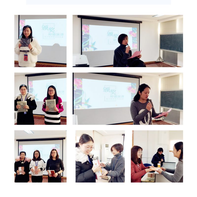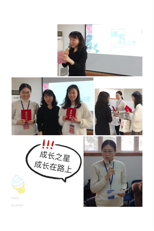 基地校教师发展负责人史亿丽老师首先回顾了基地校工作自20179月份以来的月工作重点和要点,以数字故事的形式回顾了每个阶段的专题培训课程、导师个性与团队的带教、公开课教学展示及硬笔书法基本功比赛、师德演讲比赛……,充分肯定了指导老师的倾心指导、团队部门的鼎力支持和见习教师的努力付出。接着,由校领导对见习教师“成长之星”、基本功比赛的获奖者进行了表彰,一份份学习小奖品也浸润着学校对青年教师成长的肯定与鼓励。