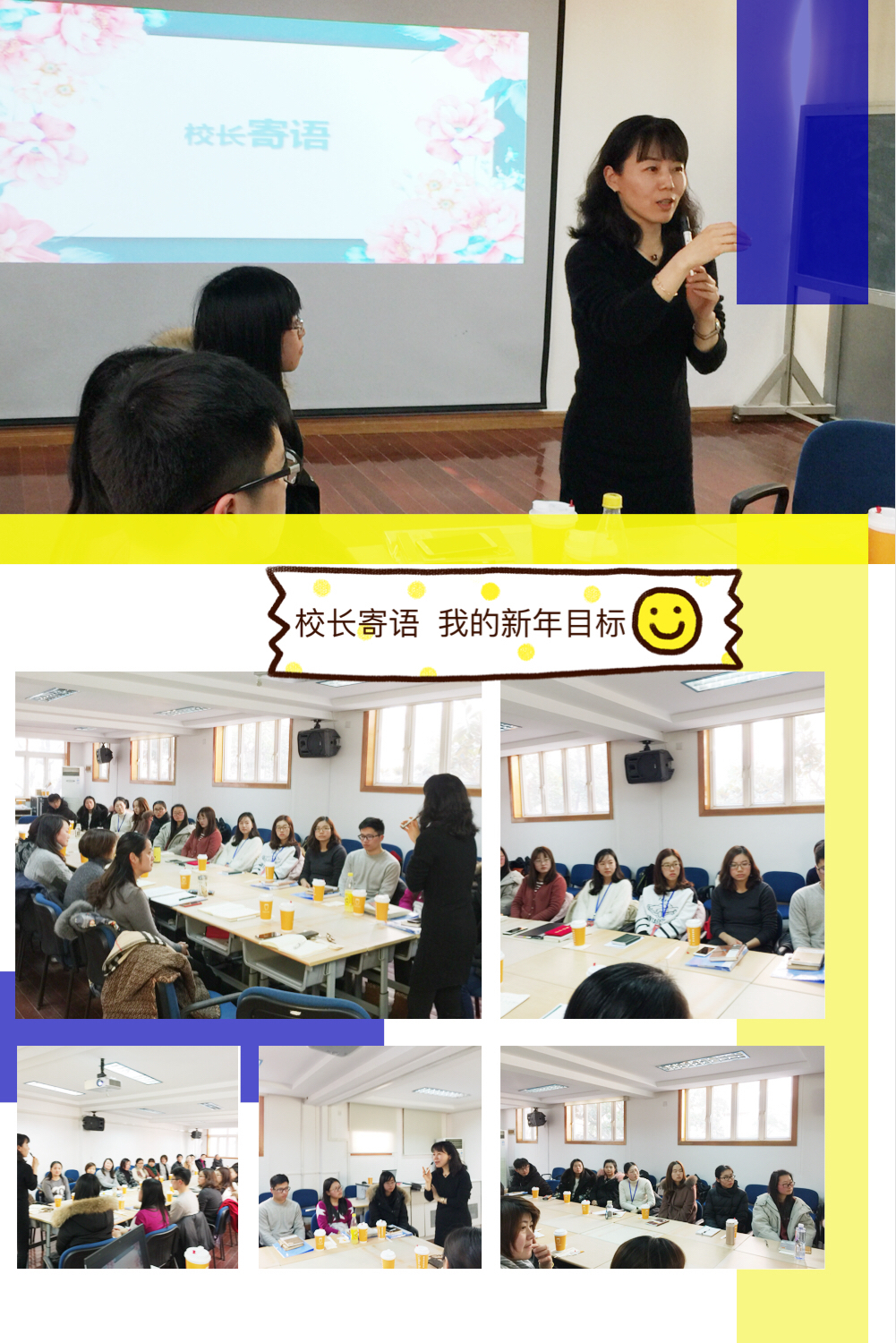 2018111日下午,以“共学习 共实践 共成长”为主题的东方小学见习期规范化培训工作总结会在蓝村校区二楼会议室隆重举行。校长陆虹、副校长佘瑛,教务处的倪老师、科研室的宋老师、兼职师训员李老师和15位带教导师、14位见习教师一起出席了本次会议。