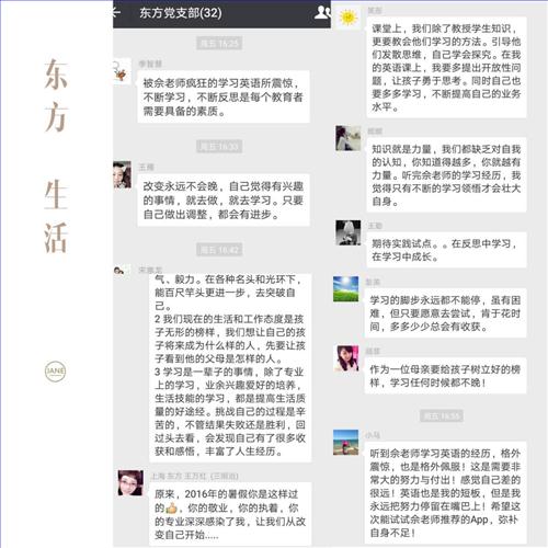 会后,与会的党团员在学校的微信平台上纷纷发表自己的即时感言,道出了各自的观点和收获。