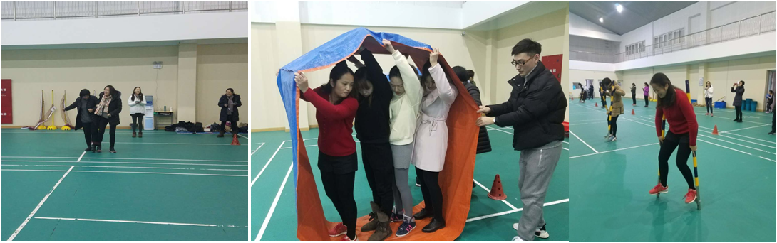 3、在本次的运动会中,年轻的顾菲、沈林锋、徐天域、李文婷老师勇挑重担,积极参与,同时报了4个项目。一些运动量大,难度的大运动都由他们完成。倪蕾老师在运动会上也是积极参与。像踩高跷比赛,由于沈老师不会,倪老师立刻顶上。后请财物的张老师,杨老师,经老师,魏师傅也积极参与到比赛中来。