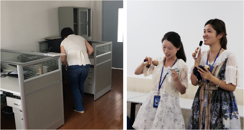 张激老师在虽然身体一直不适,但是每一次打扫卫生的时候,都非常积极主动,早早地将自己的办公桌收拾干净,并且帮忙打扫办公室卫生。