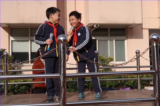“狗是人类最忠诚的朋友!……”你听!2名学生代表正绘声绘色地表演相声《狗年说狗》,两个人用幽默诙谐的演绎了和狗有关的典故、成语、歇后语和俚语,还让大家了解了狗对人类的帮助。他们夸张的动作及逗乐的台词,把大家逗得前仰后合,赢得阵阵掌声。