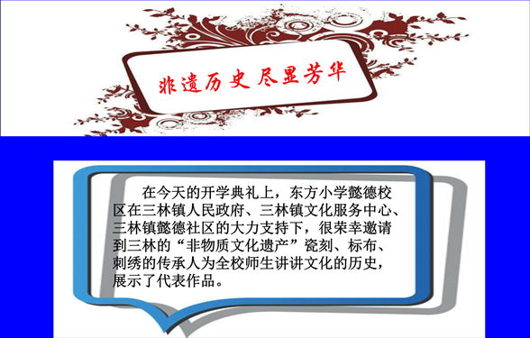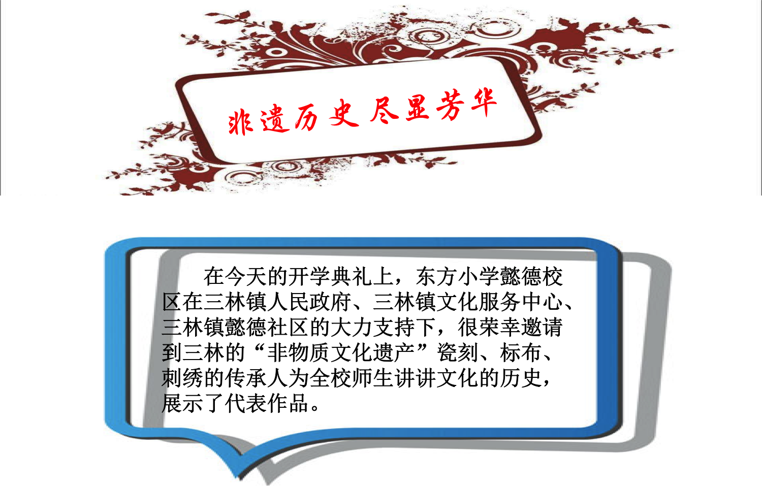 我为家乡喝彩,非物质文化遗产进校园——东方小学懿德校区2017学年第二学期开学典礼