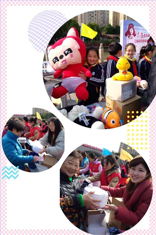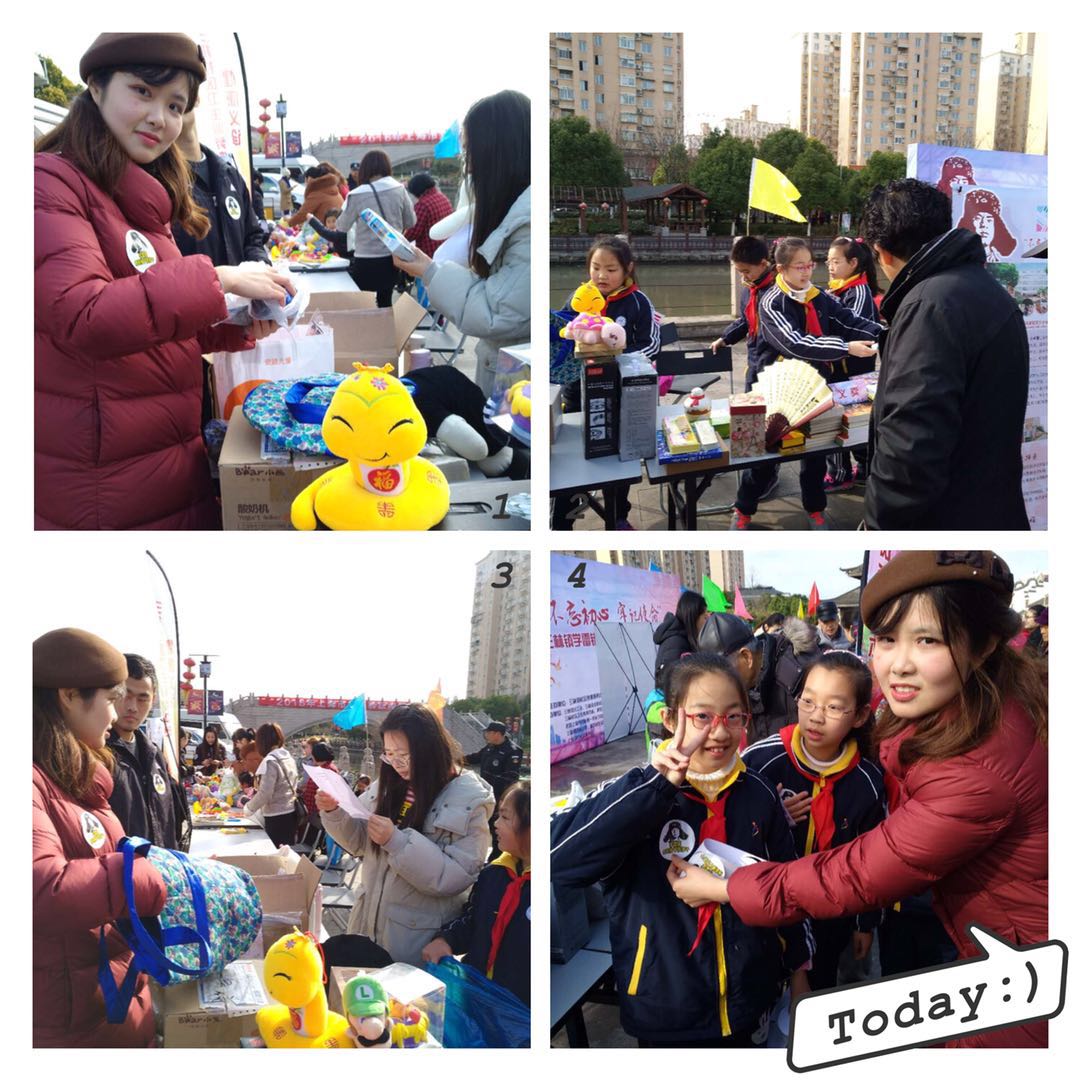 活动当天,迎着暖阳,由四名党团员和四名少先队员组成的东方慈善义卖小队早早来到三林老街,布置摊位,为义卖活动做准备。