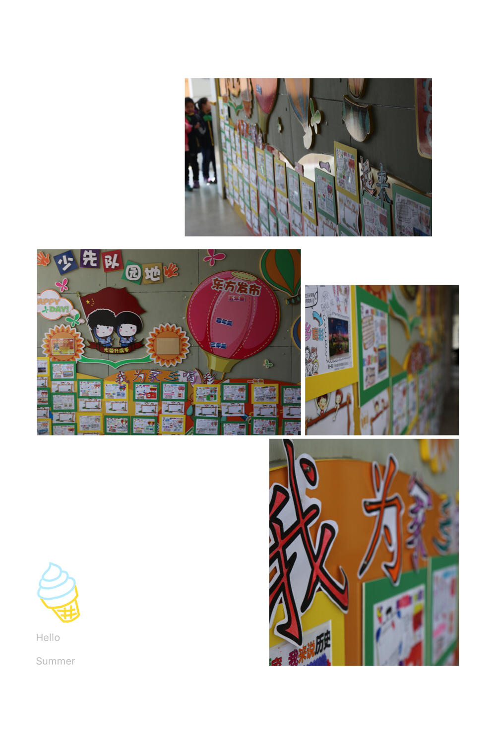 为结合十九大的召开和宣传,在寒假春节之际,东方小学少先队大队部倡议开展了“我为家乡喝彩”的系列活动。寒假里同学们都回到自己的家乡,了解了自己家乡的传统文化,感受到了十九大召开以来家乡的变化。开学后,大队部将各中队推荐上来的作品布置在大队部少先队园地,供队员们欣赏。