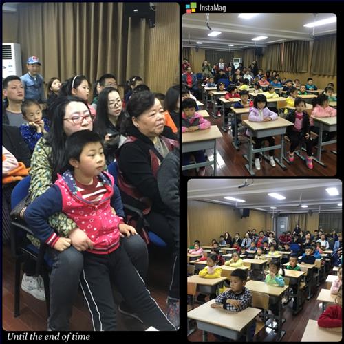 踏进校园,一切都让孩子们感到新鲜。他们努力地寻找着小学与幼儿园的不同之处,认真地观察着校园里的每个角落。周一的早晨是东方小学举行升旗仪式的时候,在操场上孩子们精神饱满地和哥哥姐姐一起参加了升旗仪式,唱国歌,体验到了作为一名小学生在升国旗时的庄严与自豪。在蓝村校区的升旗仪式上,幼儿园小朋友还和哥哥姐姐们进行了“踩低跷”的亲密互动。在哥哥姐姐的搀扶下,幼儿园小朋友们欢乐地体验着东北民俗。懿德校区的“沪语大声说”的活动也使孩子们兴趣盎然,感受到了地方文化的魅力。