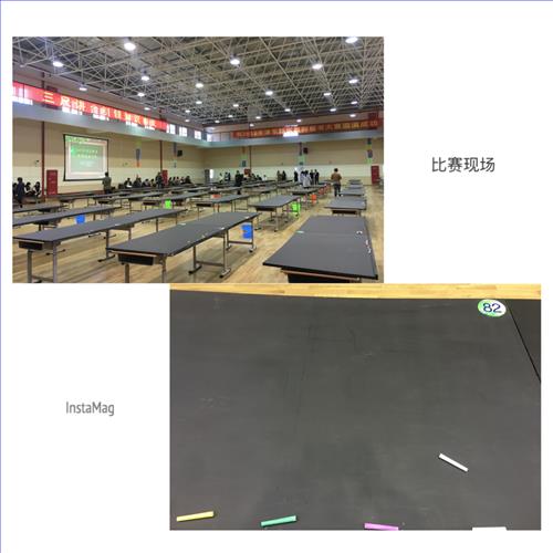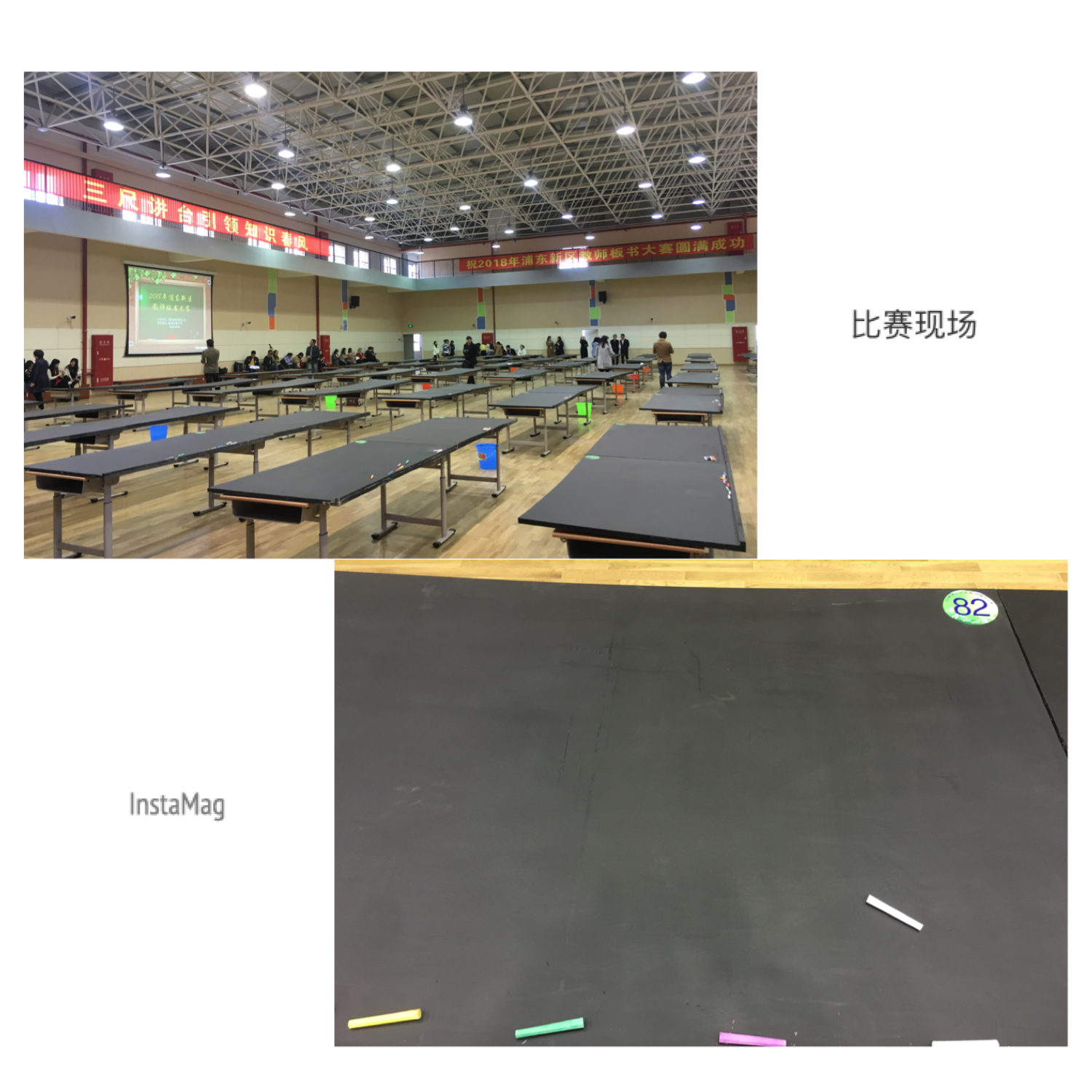 倪蕾老师代表东方小学走进了比赛赛场——航城实验小学航春路校区的体育馆。场馆内整齐地摆放了110多块大黑板,每块黑板上都贴上了号码,还摆放了各色六角粉笔。场馆两边的栏杆上还悬挂着横幅:祝2018年浦东新区教师板书大赛圆满成功。一切准备就绪,就等着老师们用手中的小小粉笔来尽显风采,一拼高下了!