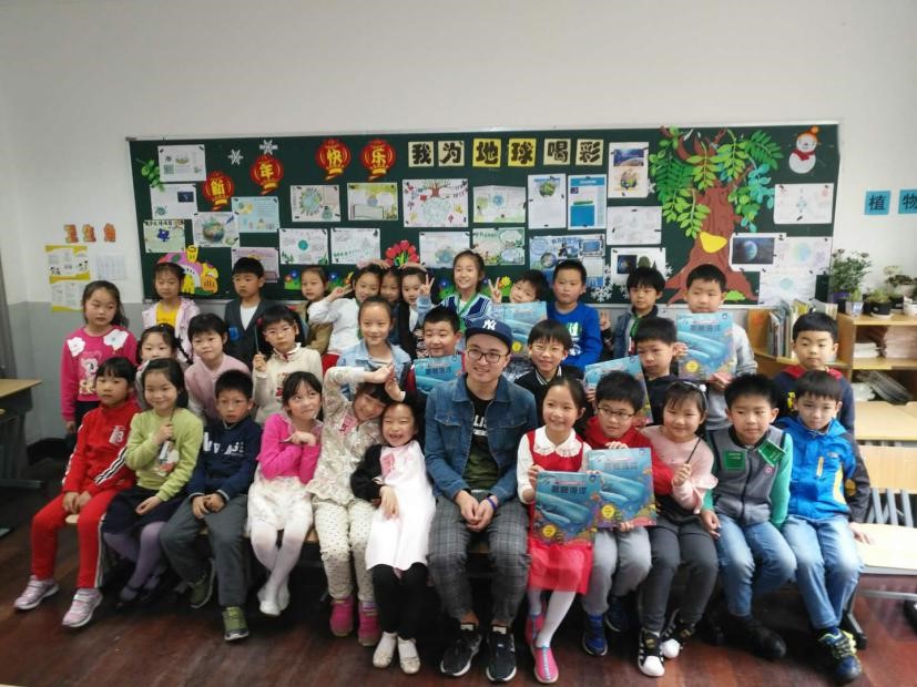 在十分钟的"Teamwork"海洋动物海报设计环节,诱人的《揭秘海洋》图书大奖再次激发了同学们的创作热情。虽然他们对团队分工协作还不甚了解,但是小组的荣誉感在此时此刻召唤他们为自己的小组鼓气加油。