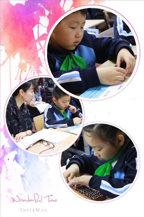 你看,陆校长也走进了珠算课程的课堂,坐在孩子身边认真地看着孩子们胖胖的小手指拨弄着小小的算珠,几秒钟就算出了答案。陆校长忍不住要为可爱的娃点赞呢!