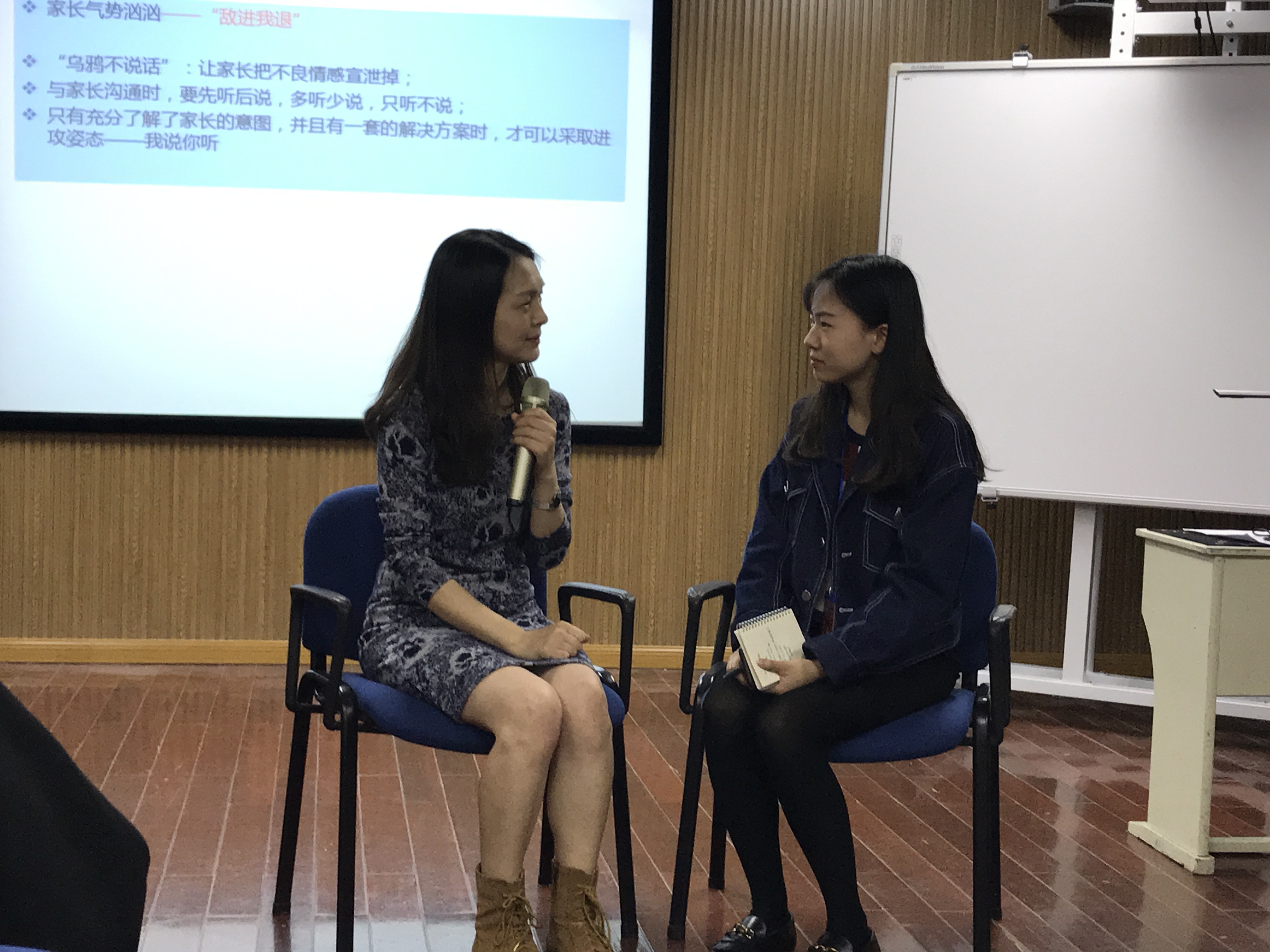 讲座主要从“分析孩子不同年龄的特征”“教师的应为与难为”“与家长的沟通技巧”三个方面展开。让老师们深刻体验到“关系优先”的沟通理念;认识到如何做一名家长心目中专业型老师,成为学生成长路上的导师和陪伴者;以及怎样捕捉学生的“可教时刻”;如何成为拥有系统化思维空间的学习型老师……老师们兴趣盎然,受益匪浅。