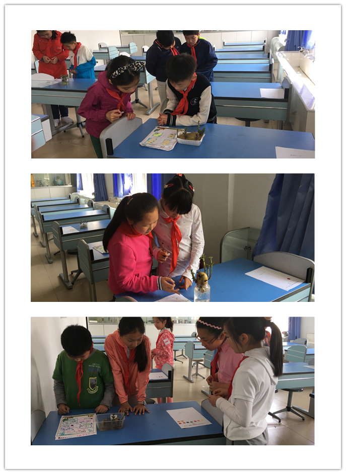 第5项是五年级的水培蔬菜项目。从4月6日开始,五年级的队员们在指导老师的带领下利用周一课程的时间开始“水培蔬菜”地种植,并且用文字、图画等方式记录下蔬菜的生长情况。经过三个星期的时间,根据蔬菜的生长情况和文本的记录情况,每班选出前3名参与年级组的决赛。5月10中午,9盆“水培蔬菜”和记录册迎来了四年级组24位学生代表的检验。队员们认真翻阅记录册,仔细观察蔬菜的生长情况,进行着严格的对比和删选……十多分钟之后,队员们有了评判结果,投出了宝贵的一票,最终决出了这个项目的前3名。