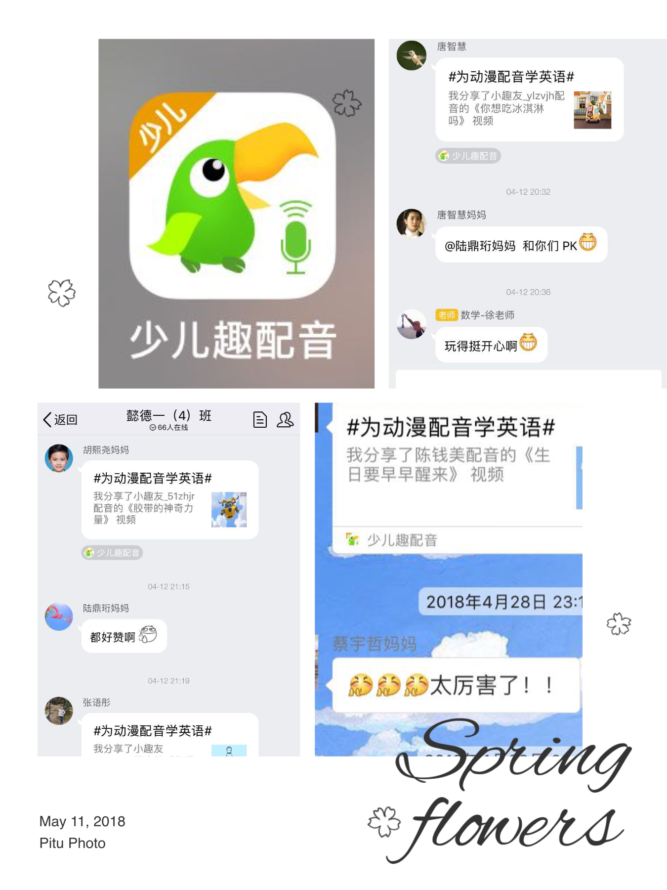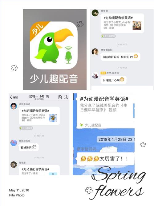 五月初,面向一二年级全体学生的英语趣配音比赛拉开帷幕。学生下载“趣配音”,并根据喜好自行选择参赛内容。海选阶段人人参与,自选作品上传班级群;再由英语教师严格把关,每班选出3位学生参加决赛。配音内容丰富,亮点众多。其中有美妙动听的歌曲演唱,有幽默搞笑的动画配音,有动人煽情的诗歌朗诵。学生那角色间的自如切换,那流利的英文表达,那饱满的感情色彩,让评委们惊喜不断。