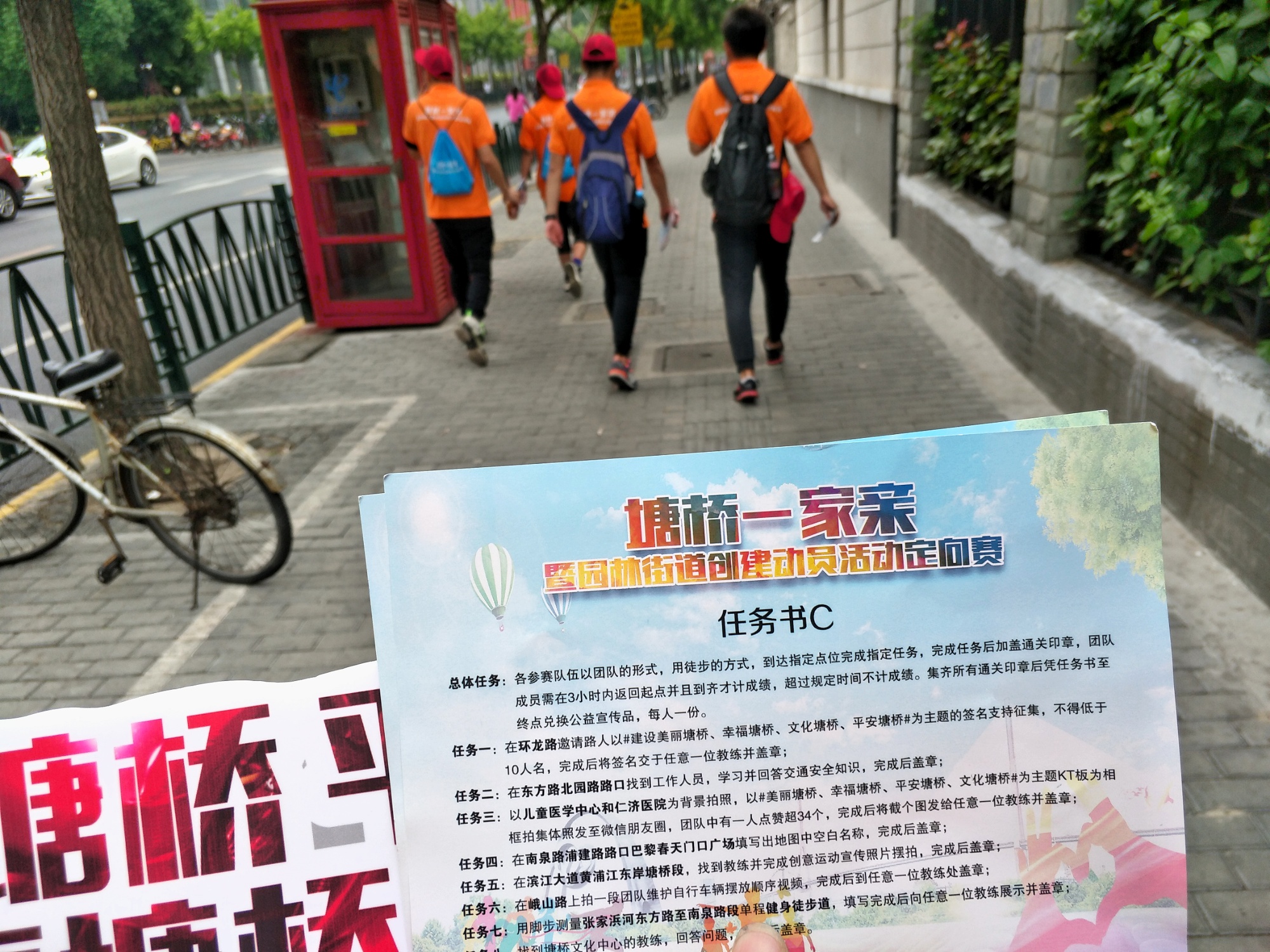 下午十二点半,塘桥社区的志愿者们都依旧陆续赶到,东方小学的老师们相继领取自己的装备,各个激情无限。大家根据任务卡和路线图进行探讨,标记出最佳的路线。