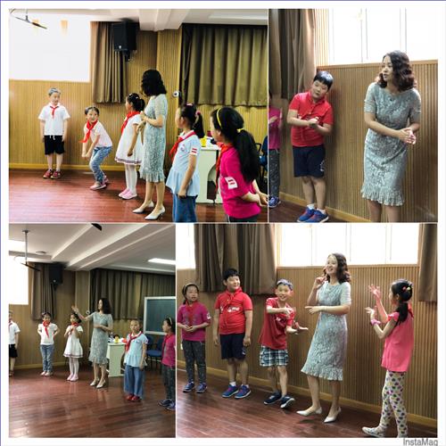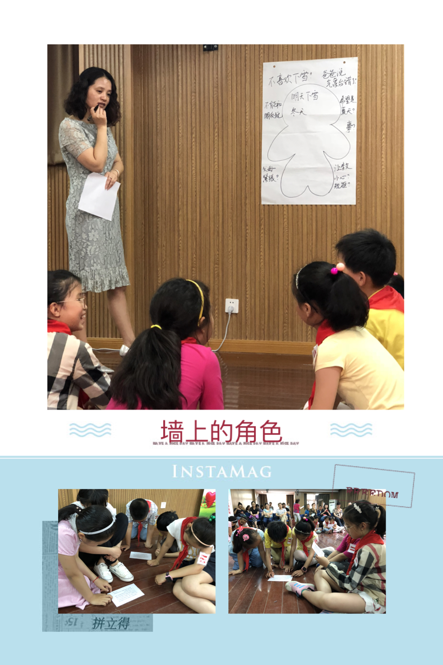 22名学生,三分之二的孩子是第一次参加教育戏剧工作坊。因此,热身游戏火热登场。“取名字,叫名字换站位”这个最简单,也是最有效的破冰游戏百玩不厌。这次还增加了搭着下一个同伴的肩交出同伴名字的游戏,这可是考验孩子的记忆力,也是帮助孩子们迅速相互熟悉。之后的“几个人来了”、“县官”的游戏都是考验孩子的专注力,笑声此起彼伏,玩得不亦乐乎。