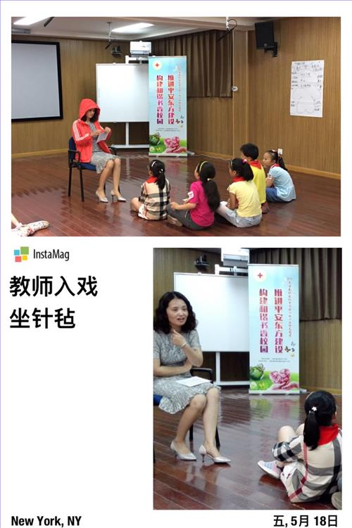其实,这是一个简单的环节,如果放在平时的课堂中,基本就是以学生阅读文本为主了解所发生的事情。而在教育戏剧工作坊里,可以让孩子通过读日记,搜索已知和未知的信息,然后在教师创设的情境中,去和故事中的人物沟通、交流。在情境中的,学生的交流是对象的,此时学生是在运用语言,而不是机械地背或读。学生是根据李艾的反应来调整问话的内容。比如当孩子们问李艾为什么不喜欢下雪天,到底发生了什么事?李艾不肯说。一个孩子就非常真诚地说:“你告诉我们吧,看我们能不能帮助你?”这个问题显然不是事先准备好的,而是孩子们看到李艾如此害怕,发自内心的想要帮助李艾。这也正体现了教育戏剧的特点——empathy 同理心:站在他人的立场,这是在教学戏剧中最重要的一点,又叫做换位思考、神入、共情,指站在对方立场设身处地思考的一种方式,即与人际交往过程中,能够体会他人的情绪和想法、理解他人的立场和感受,并站在他人的角度思考和处理问题。